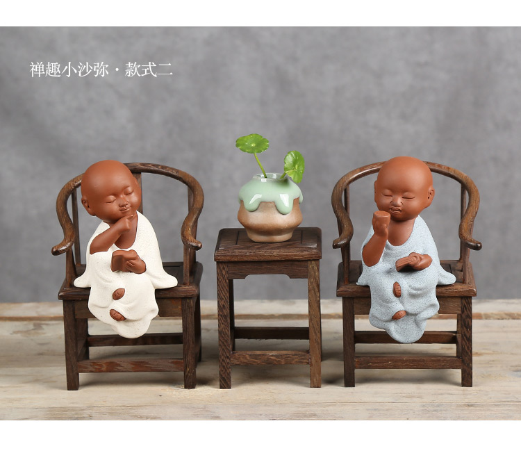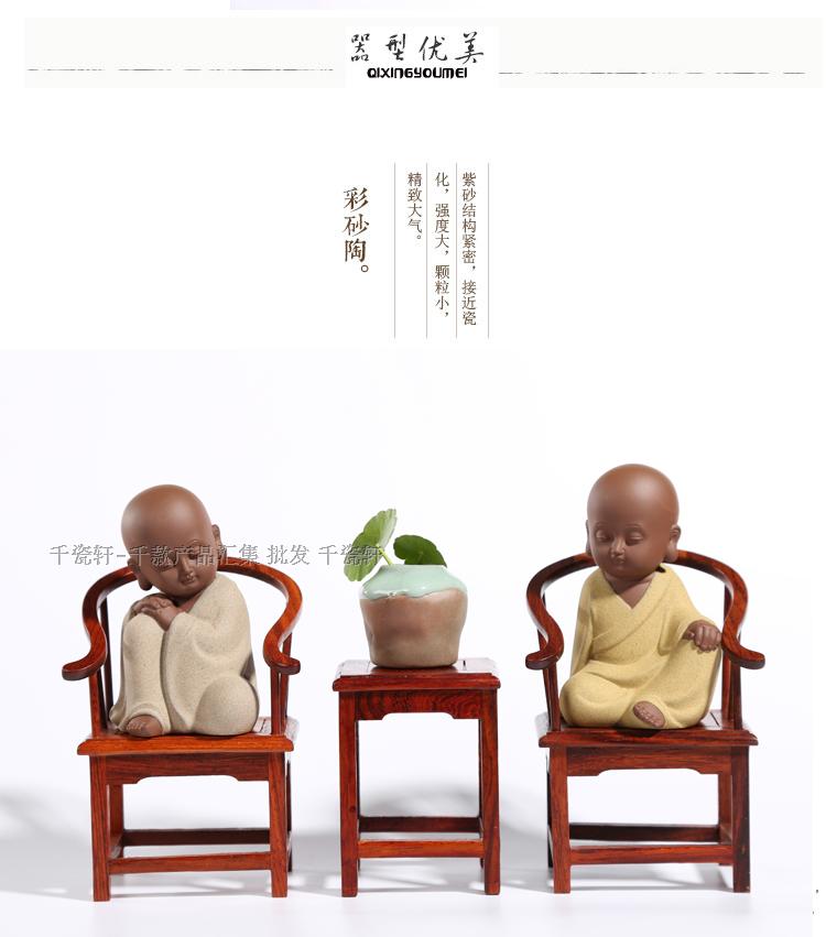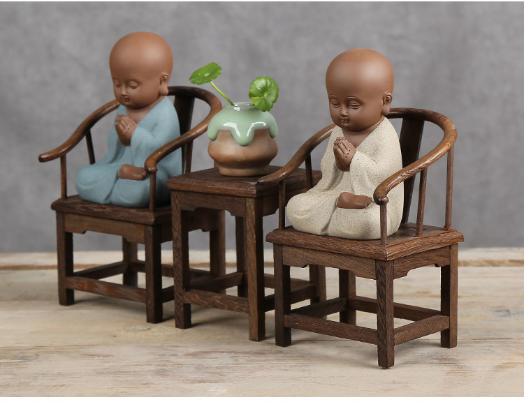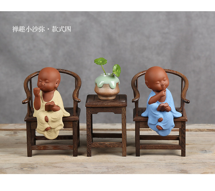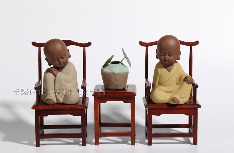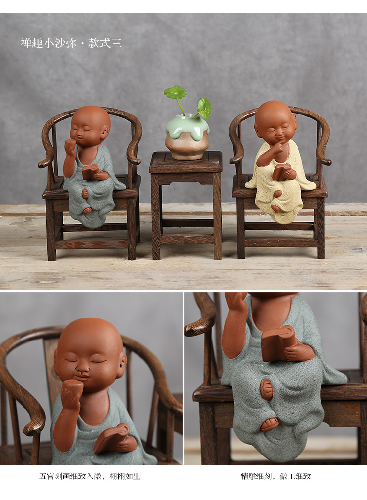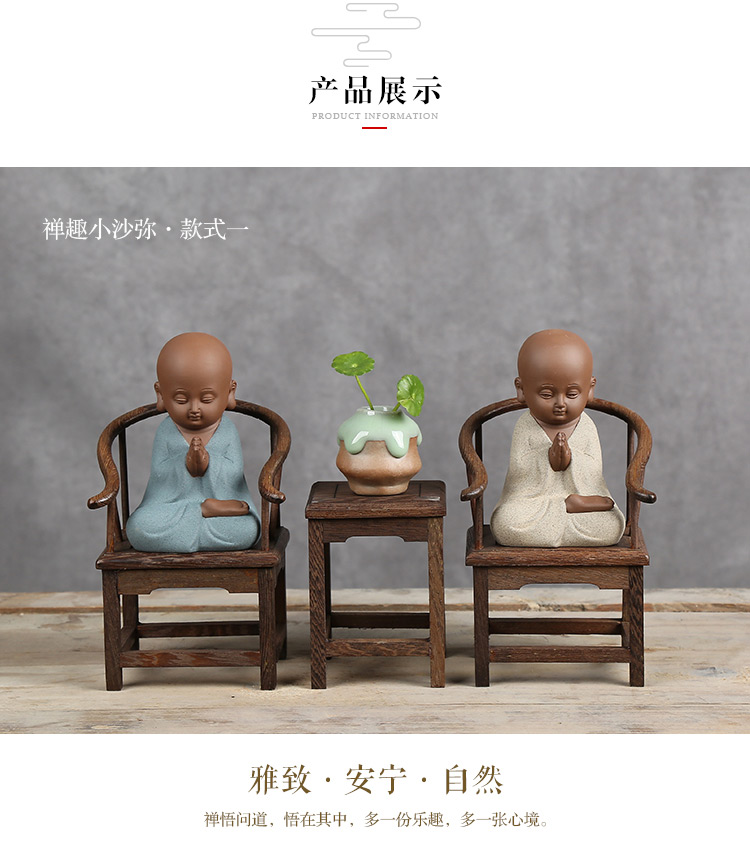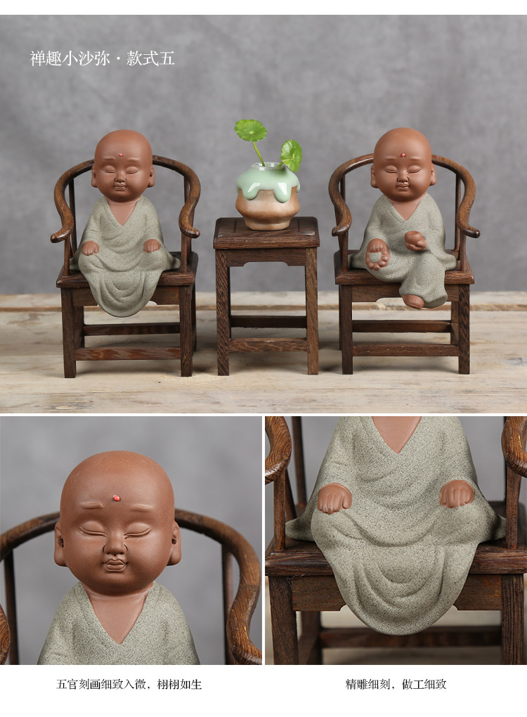創意茶寵擺件精品可養 紫砂禪意中式小和尚茶道茶具配件手工茶玩1入
