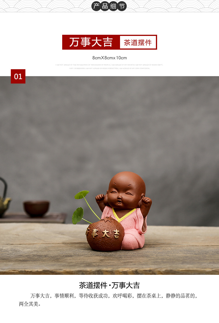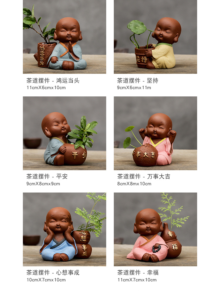 紫砂可養茶寵精品擺件小和尚茶道茶盤家居桌面裝飾品創意茶藝茶玩1入