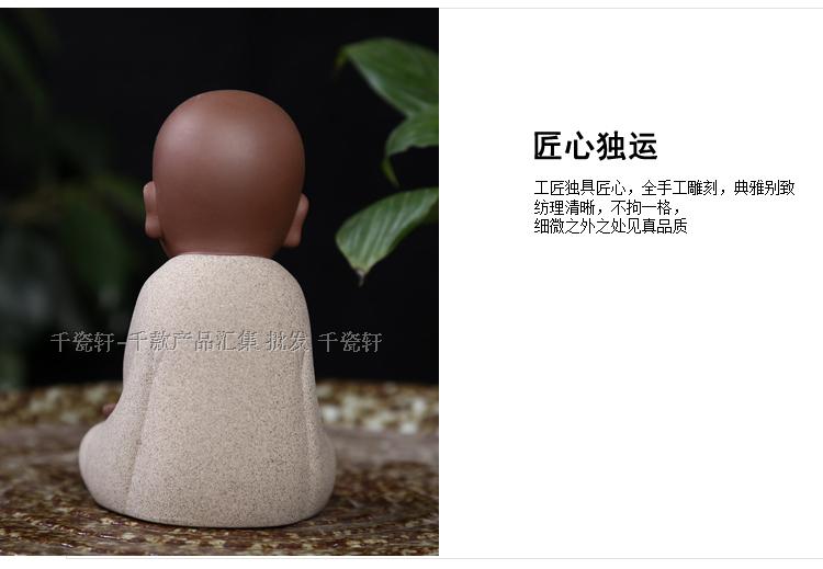 創意精品陶瓷紫砂茶寵擺件精美個性人物手工和尚沙彌茶具配件1入