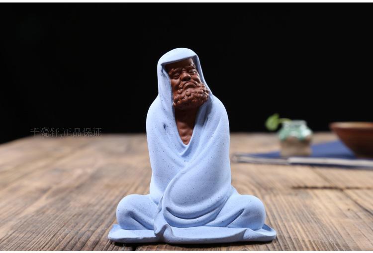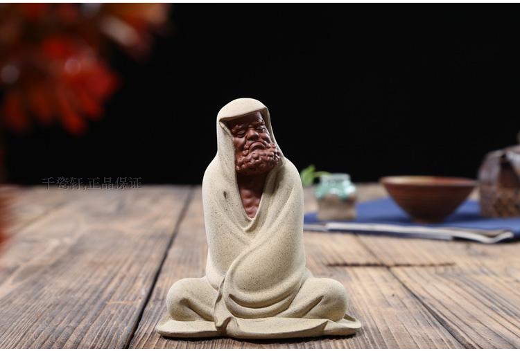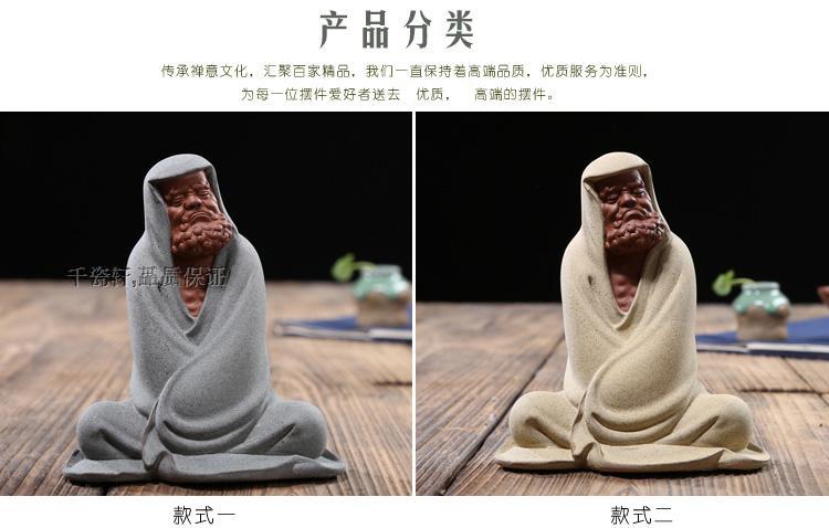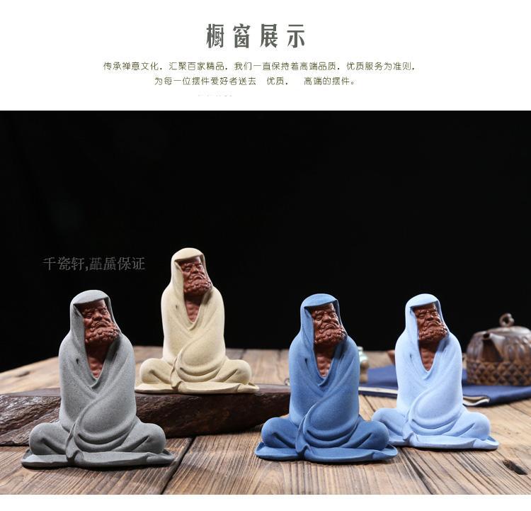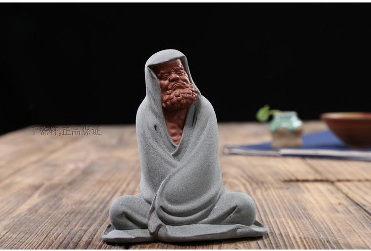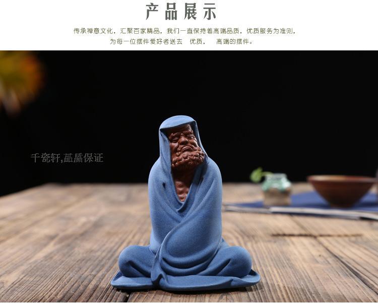 創意精品紫砂達摩禪意茶寵茶具茶道配件家居裝飾茶玩茶藝擺件1入