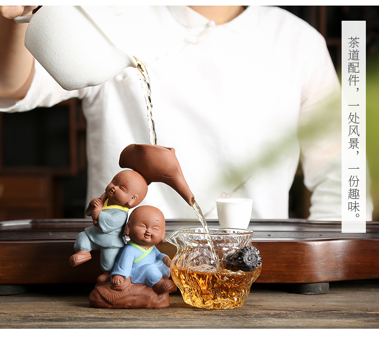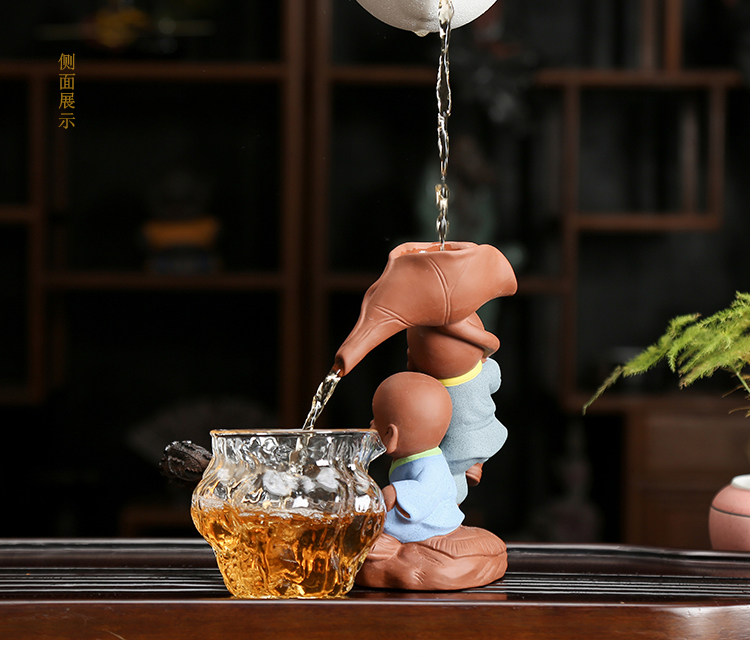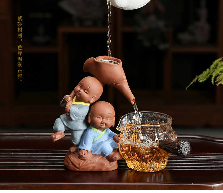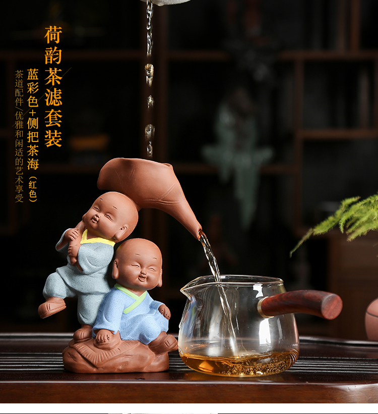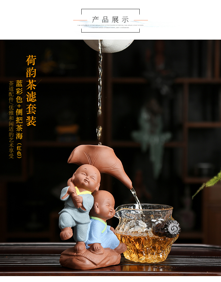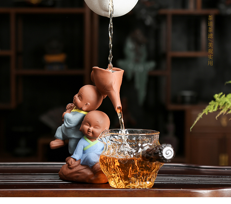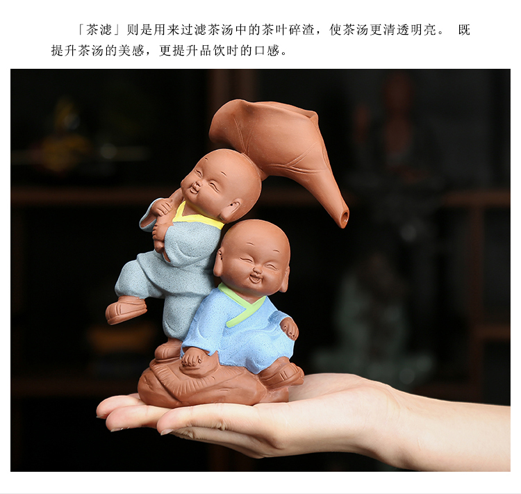 創意小和尚紫砂茶漏 不銹鋼過濾網功夫茶具茶道配件茶寵擺件1入