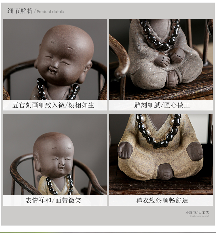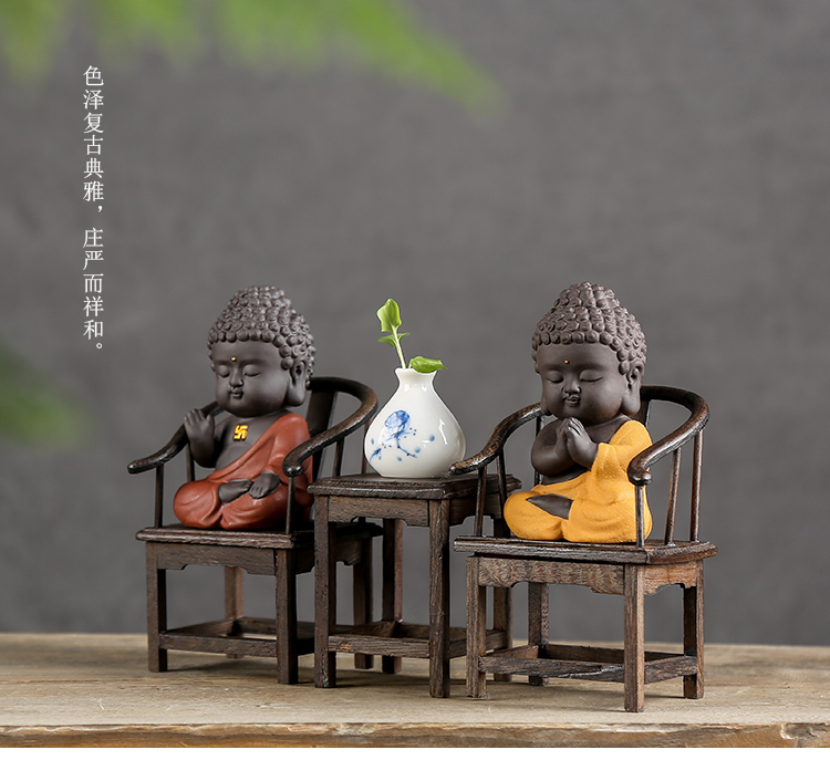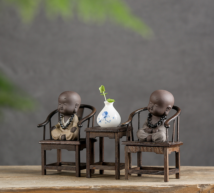 禪意可愛小如來茶寵擺件套裝雞翅木太師椅紫砂創意裝飾品茶道茶玩1入