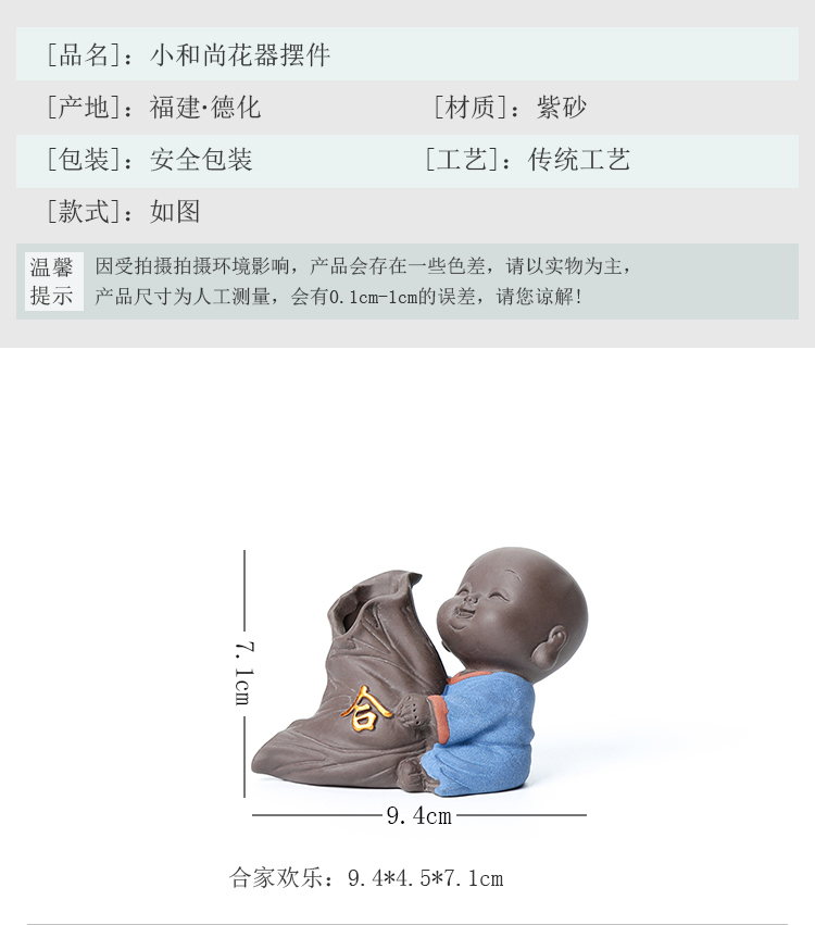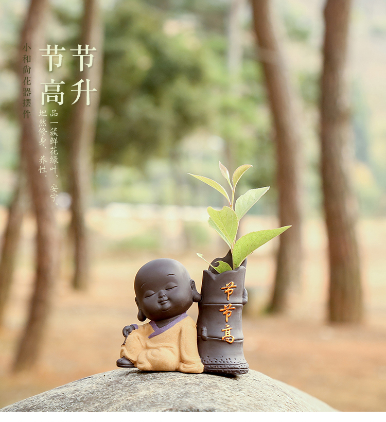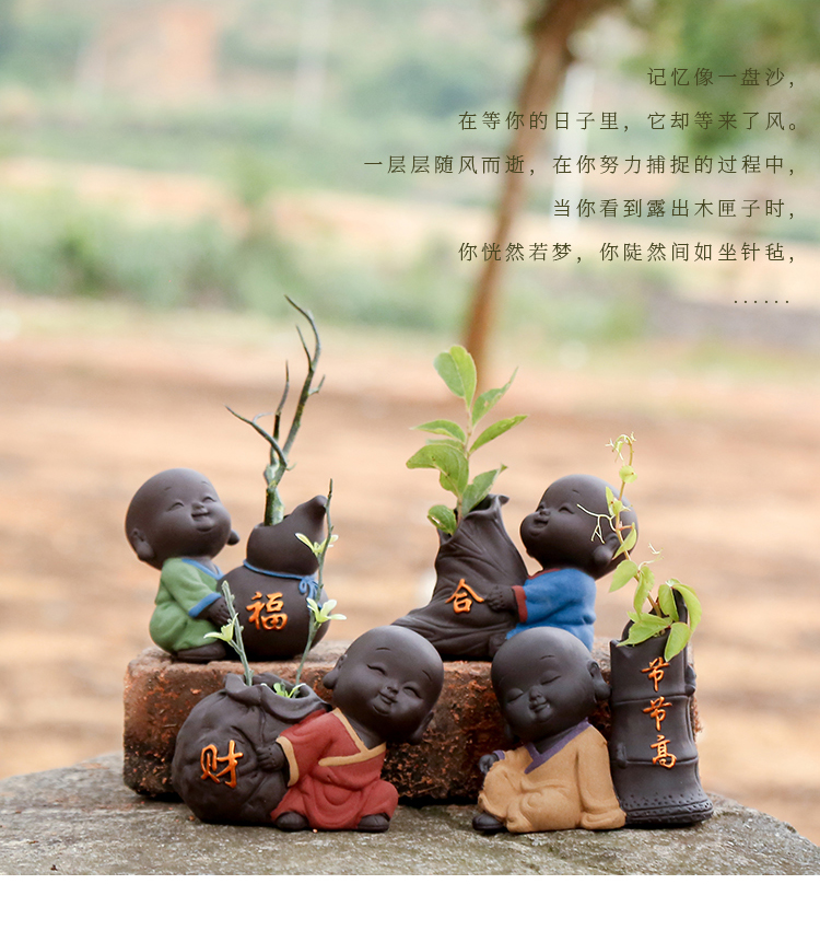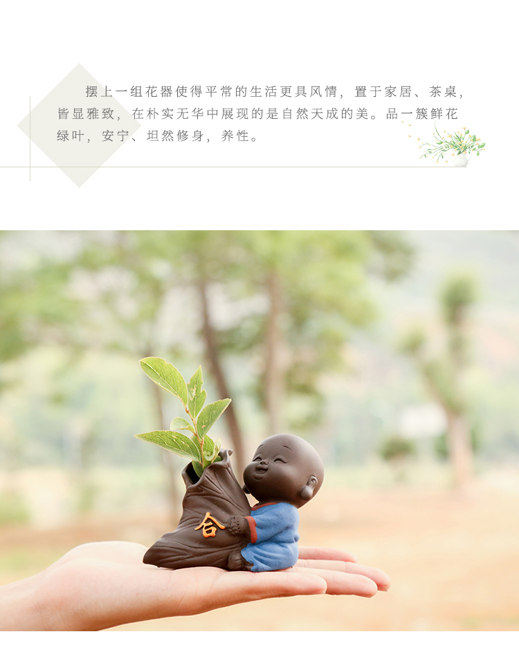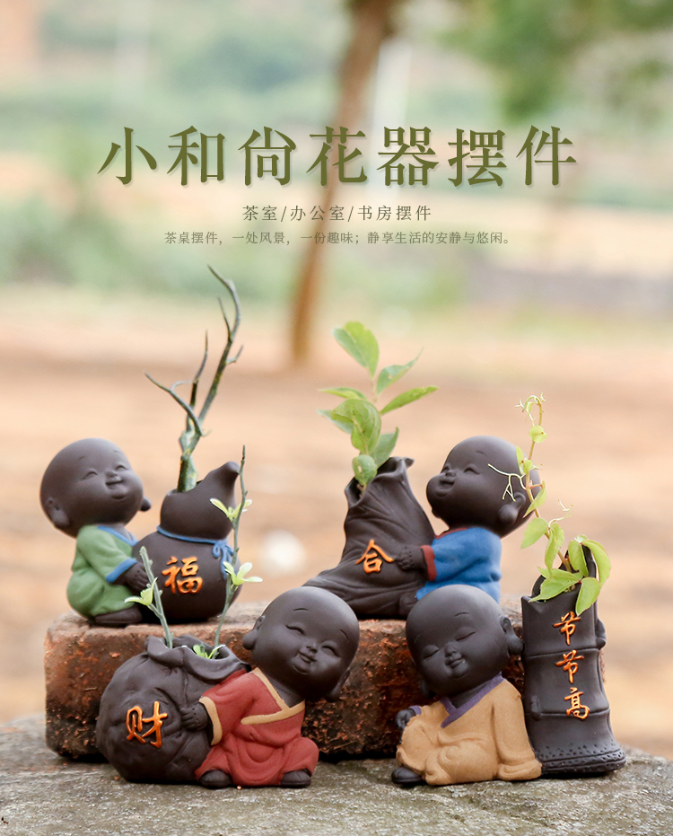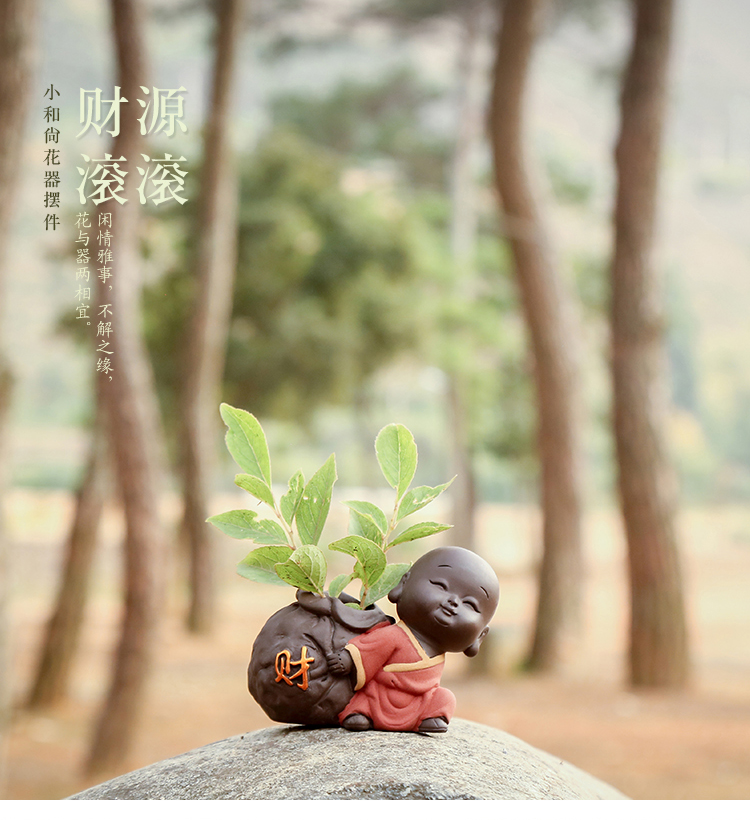 可愛迷你小和尚精品紫砂可養茶寵擺件創意家居茶具裝飾品禪意花器1入