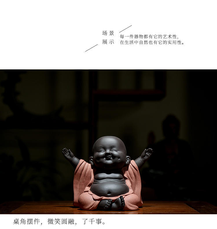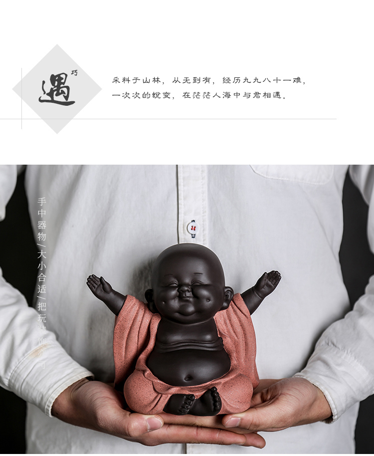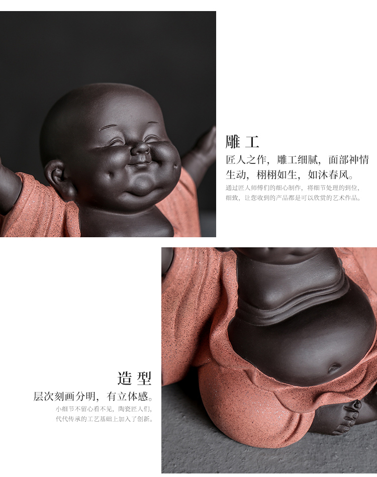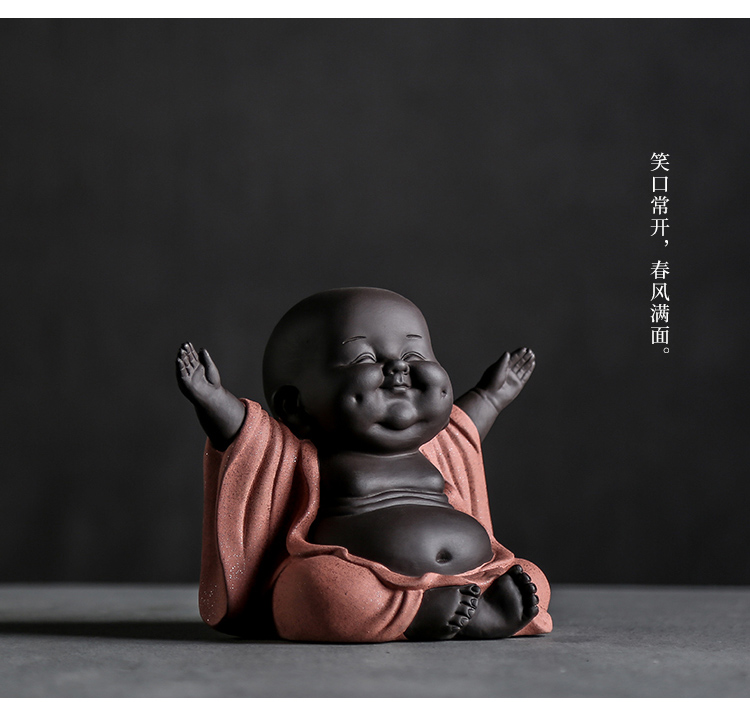 開心彌勒佛笑佛可愛茶寵擺件大號紫砂茶玩家居裝飾品禪意茶桌擺設1入