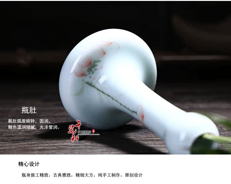 荷葉花器(小號哥窯梅子青冰裂)龍泉青瓷花瓶擺件客廳插花陶瓷水培容器綠蘿現代簡約家居創意裝飾