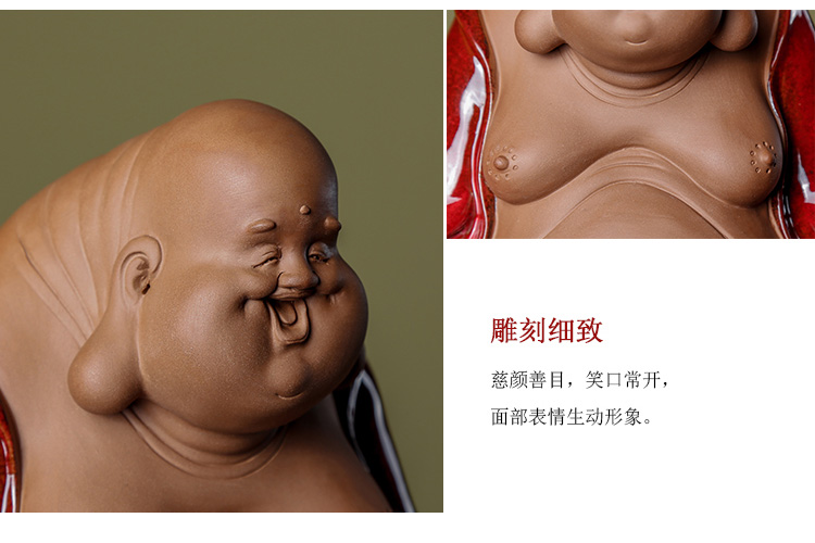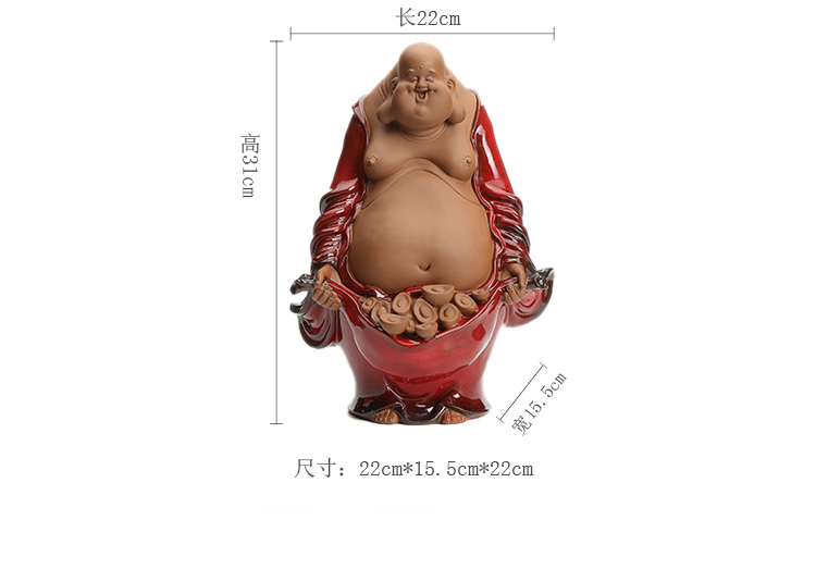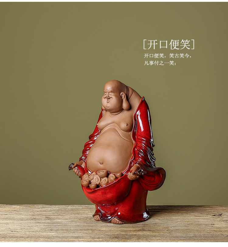 創意陶瓷彌勒佛笑佛家居裝飾工藝品辦公室書房客廳大號招財擺設1入