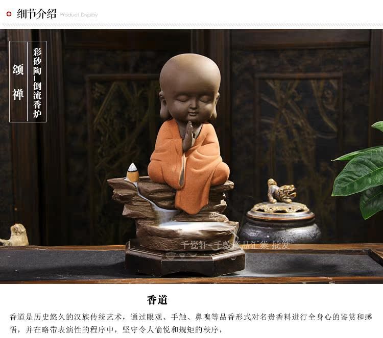 陶瓷香爐檀香和尚佛熏香倒流香薰爐創意塔沉香香道佛家居擺件1入