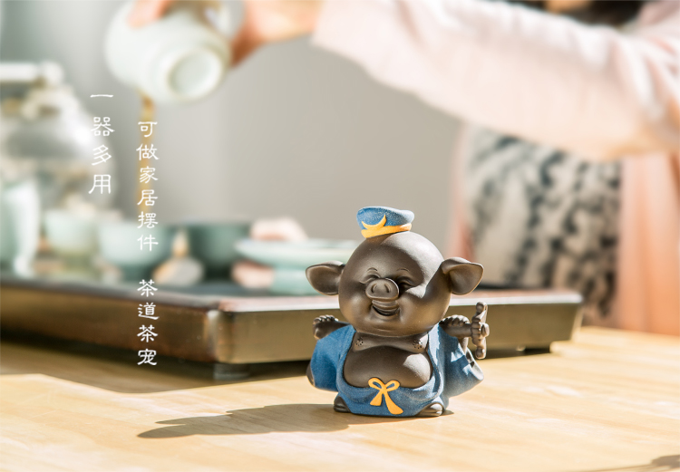 紫砂茶寵擺件手工可愛小豬精品創意可養茶玩家居裝飾茶具茶道配件1入