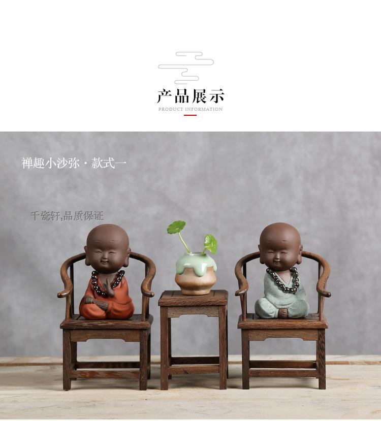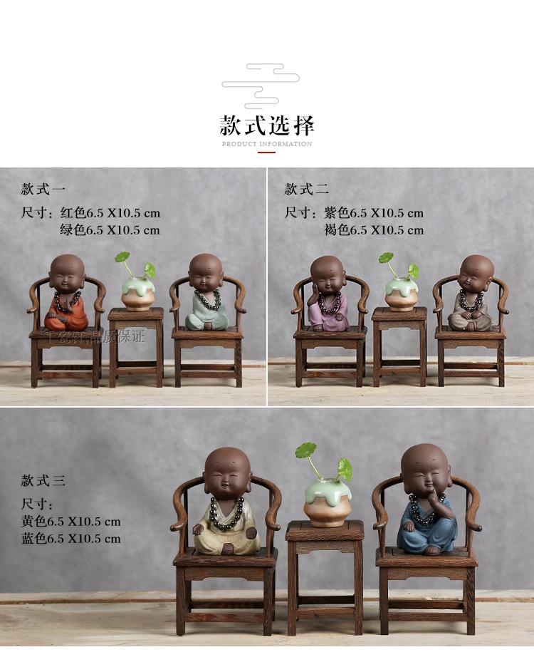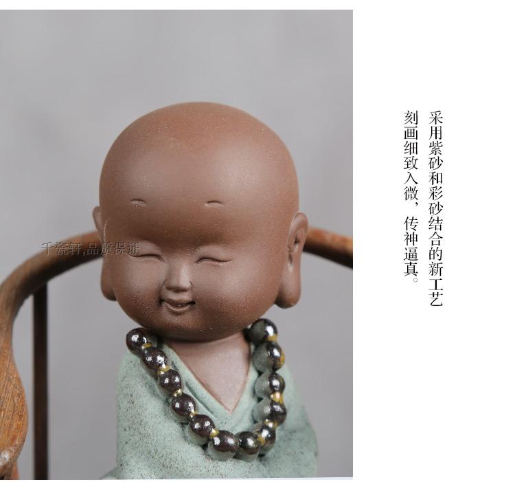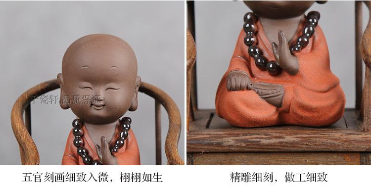 精品禪意小和尚紫砂茶寵擺件 創意手工精美現代中式茶具茶盤茶玩1入