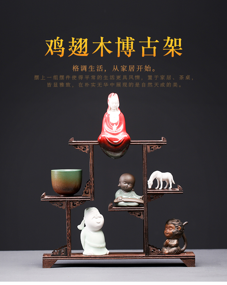 雞翅木實木茶寵底座搏古小架子茶道配件茶玩創意精品茶藝擺件擺設1入