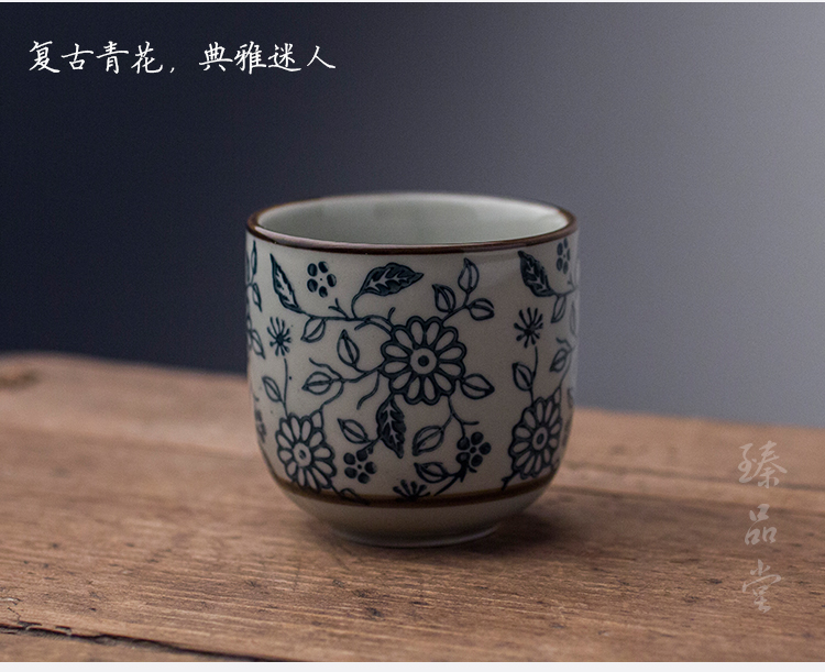 青花瓷主人杯 大號功夫品茗杯仿古茶碗陶瓷功夫茶具茶杯日式單杯1入