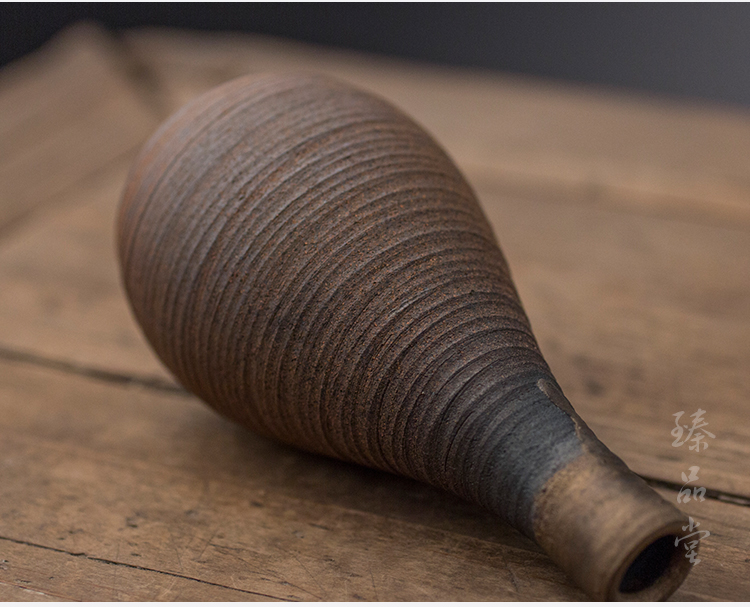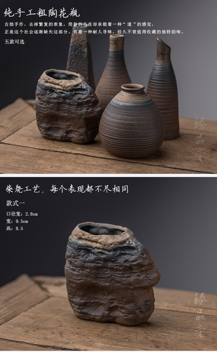 粗陶創意手工花瓶 小號中式陶瓷花器 花藝日式花插茶道復古擺件1入