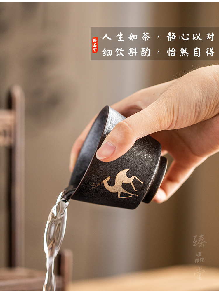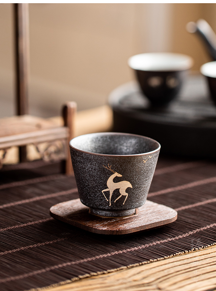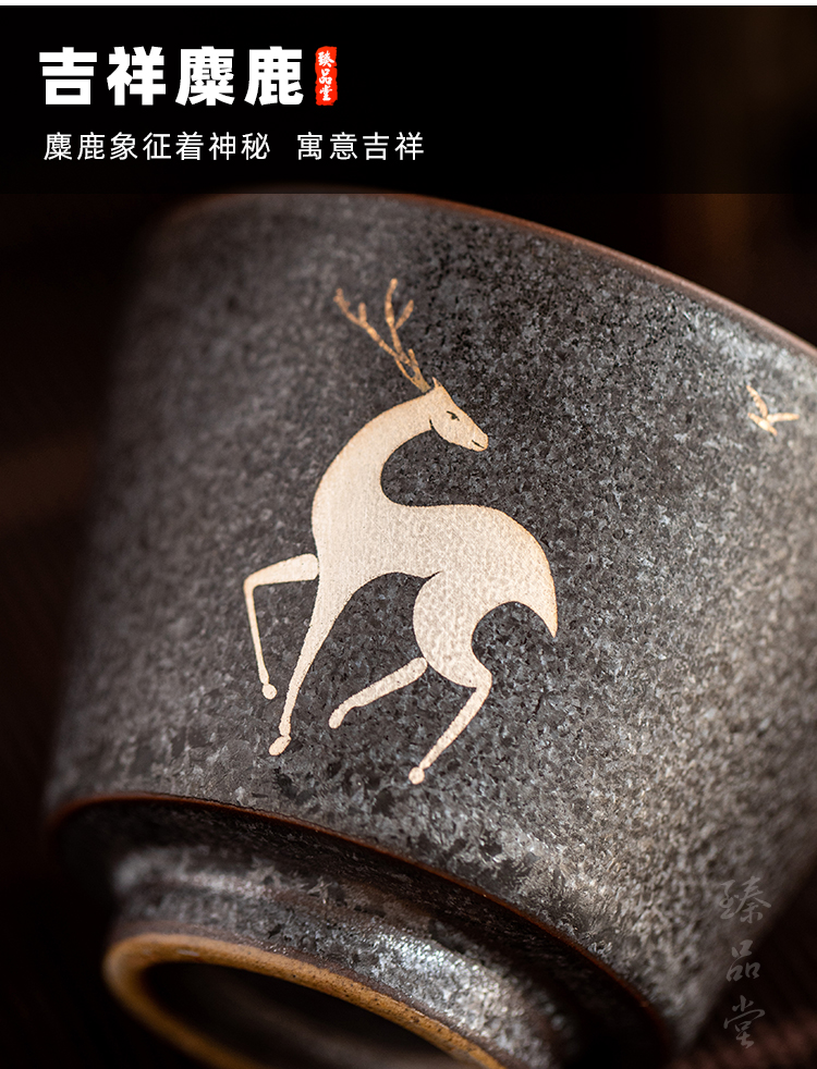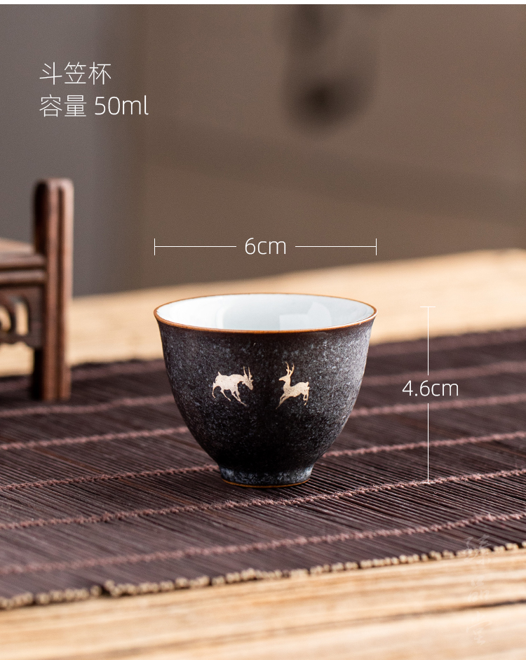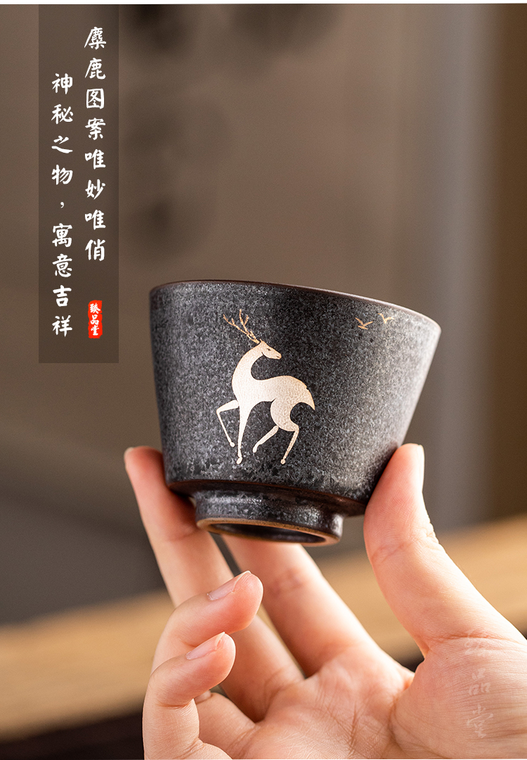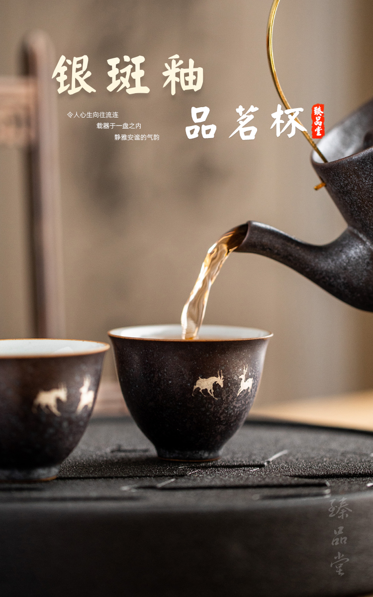 銀斑釉麋鹿茶杯品茗杯 陶瓷復古主人杯個人杯小單杯 創意功夫茶具1入