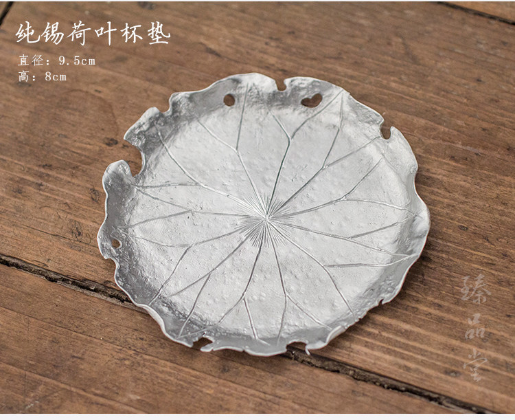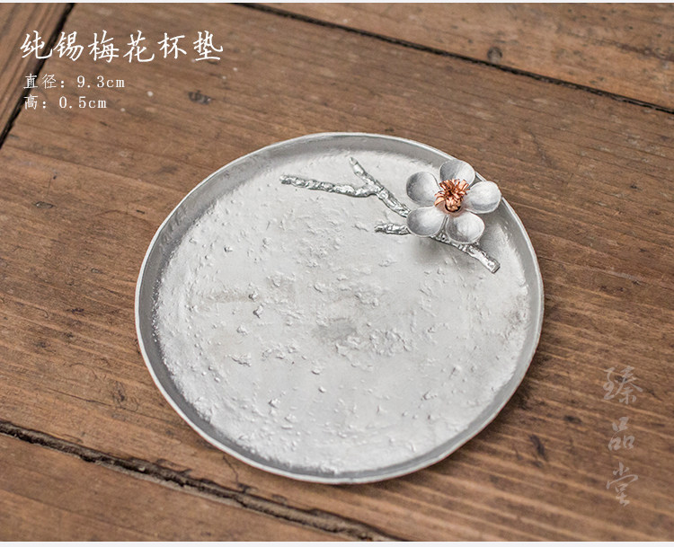 純錫手工杯墊 日式杯托茶道配件茶托壺承 仿古復古復古金屬茶碟1入