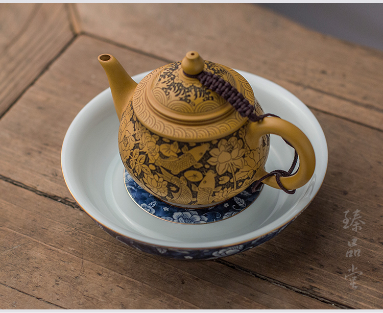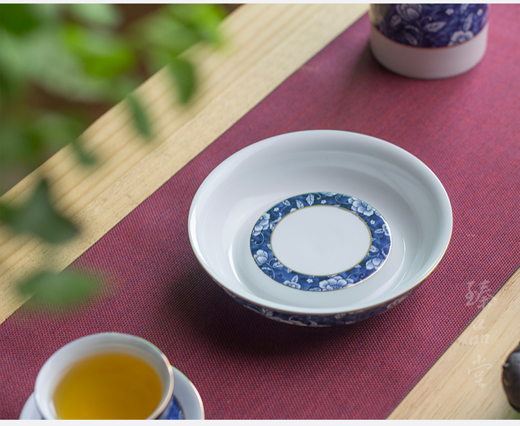 青花瓷壺承 景德鎮茶承功夫茶具配件壺托干泡盤復古陶瓷茶托壺墊1入