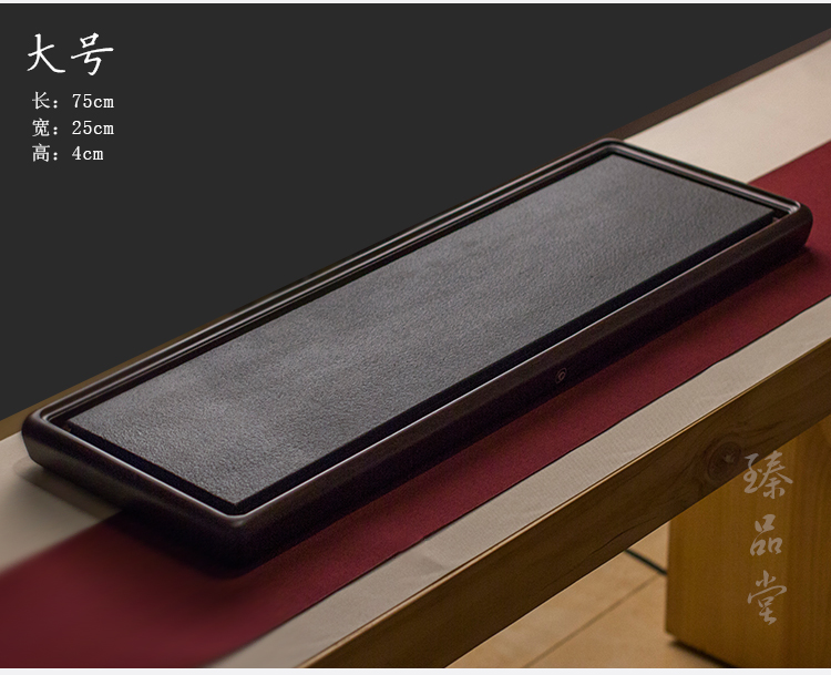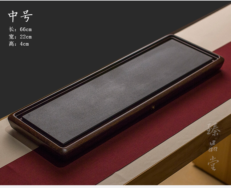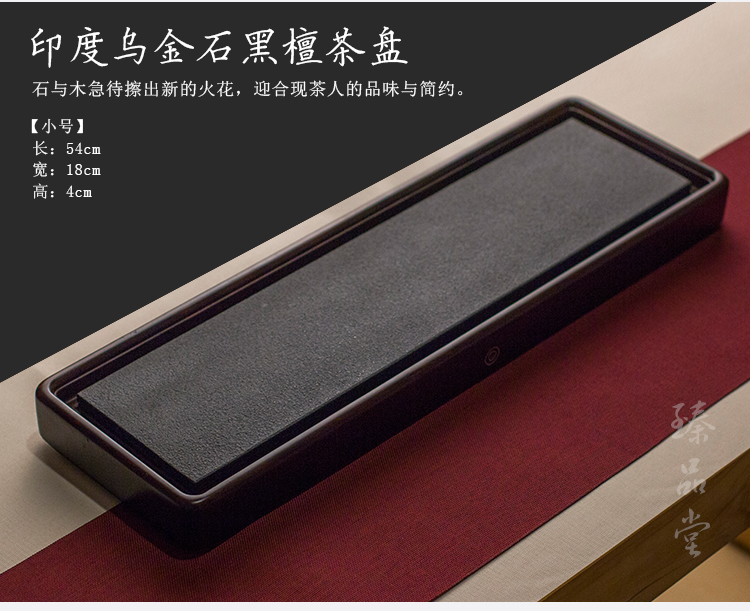 黑檀木茶盤 實木烏金石功夫簡約小號長方形茶海 干泡排水日式茶臺1入