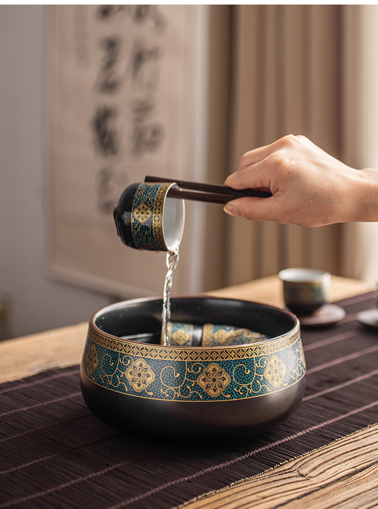 鎏金茶洗水盂大號陶瓷洗茶杯盆碗的器皿茶具配件茶道零配家用筆洗1入