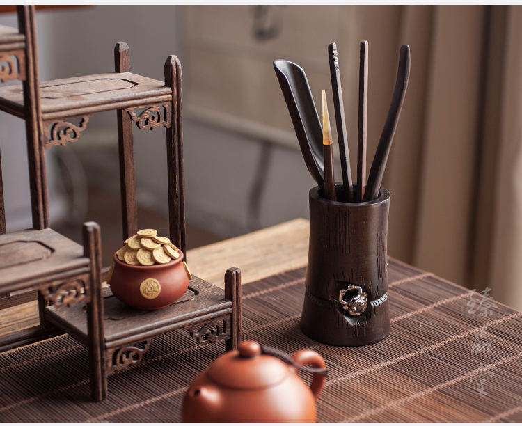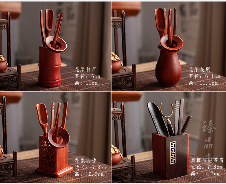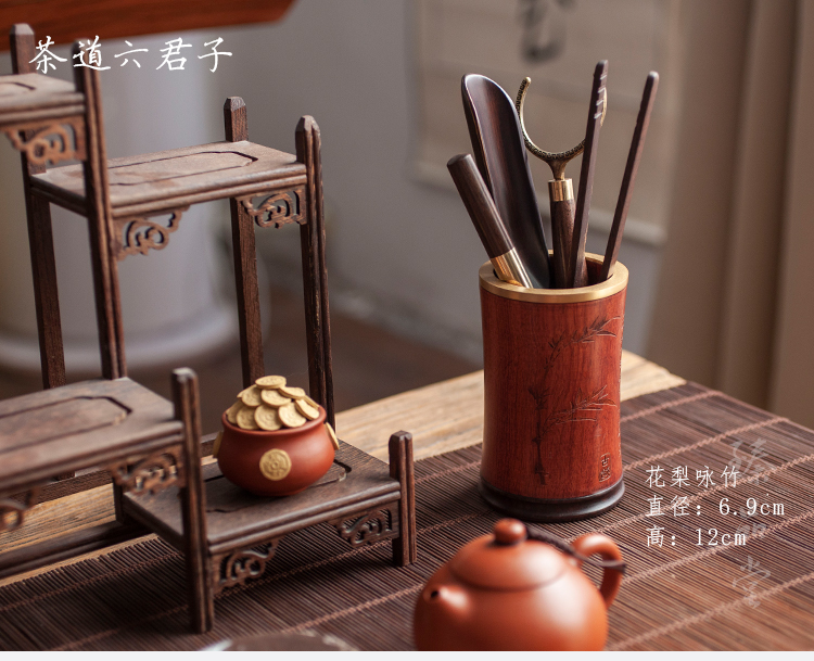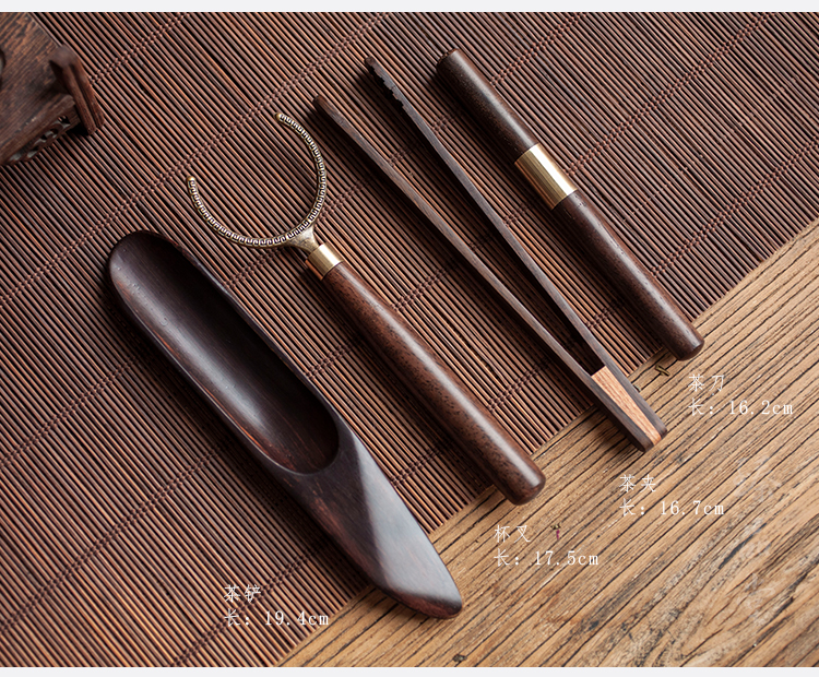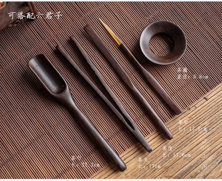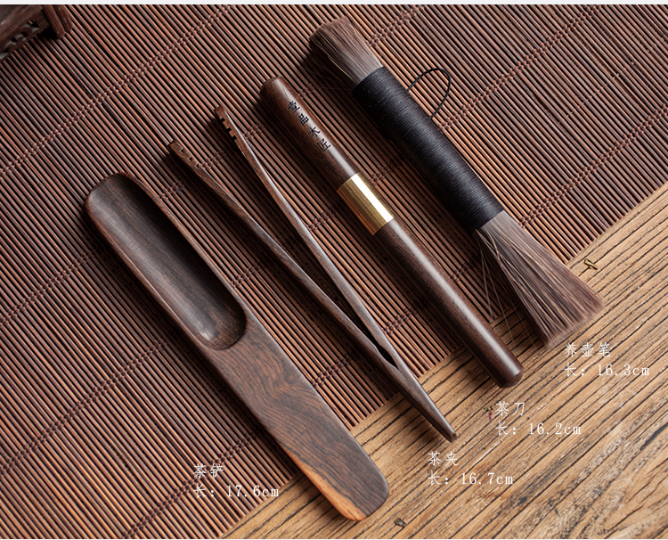 黑檀木功夫茶具配件整套茶道六君子家用花梨木茶夾套裝養壺筆茶刀1入