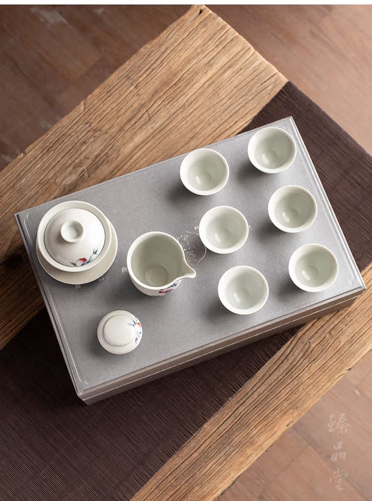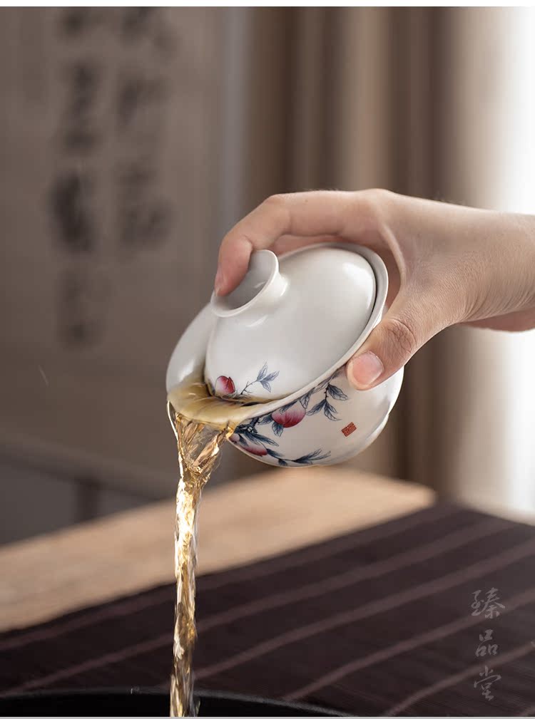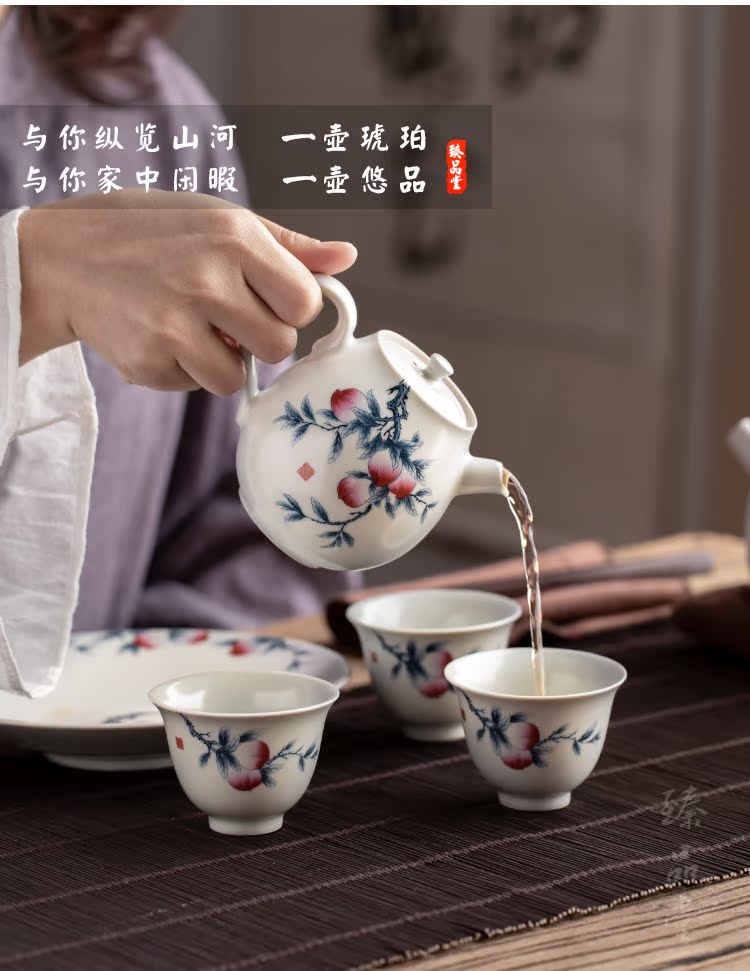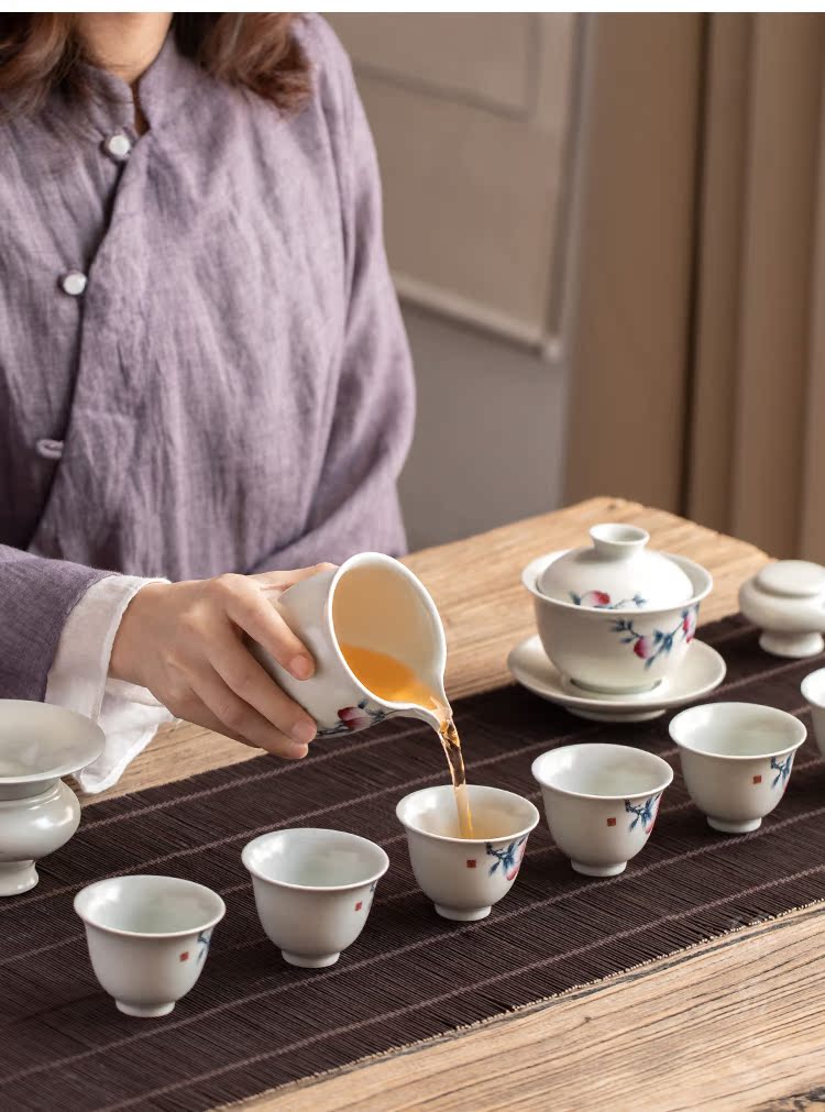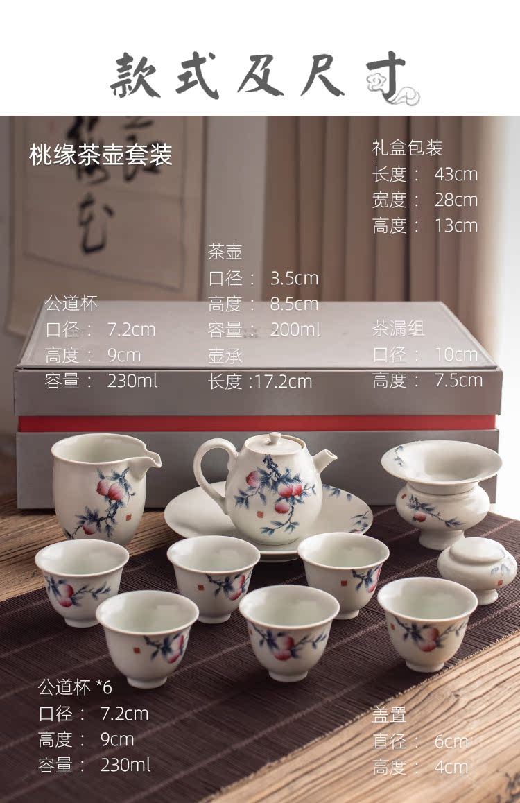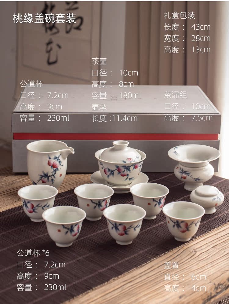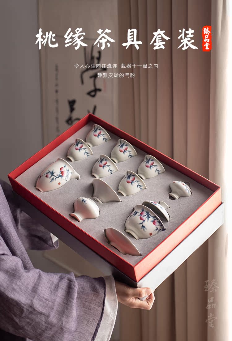 桃緣汝窯茶具套裝家用簡約辦公客廳茶杯蓋碗泡茶陶瓷整套功夫茶具1入