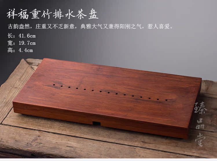 重竹茶盤 竹制小號茶海茶干泡托盤 家用長方形家用簡約排水式茶臺1入