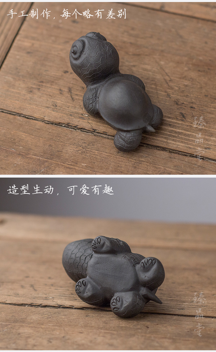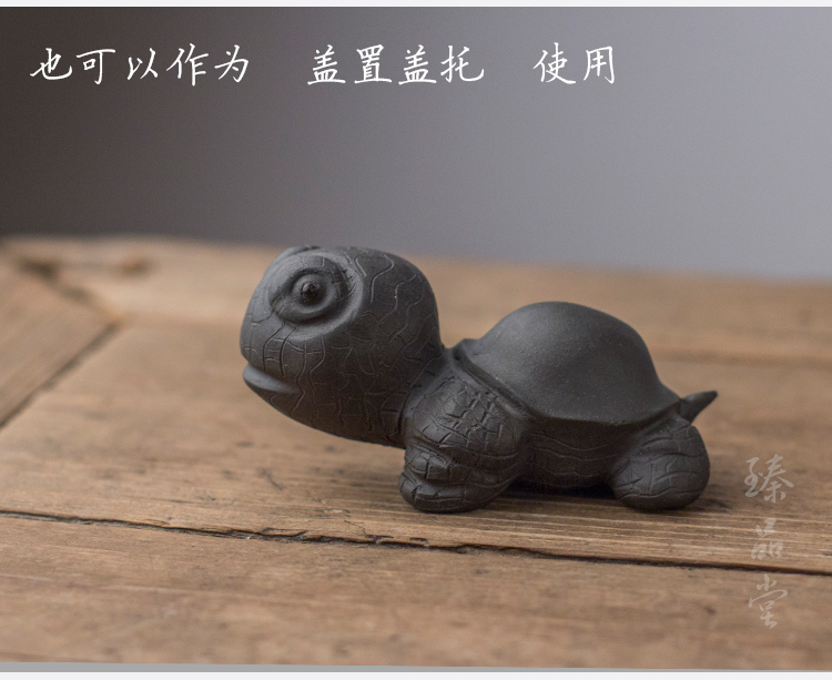 臻品堂 烏龜茶寵擺件 紫泥大頭龜茶玩可養小巧蓋托茶盤茶具配件1入