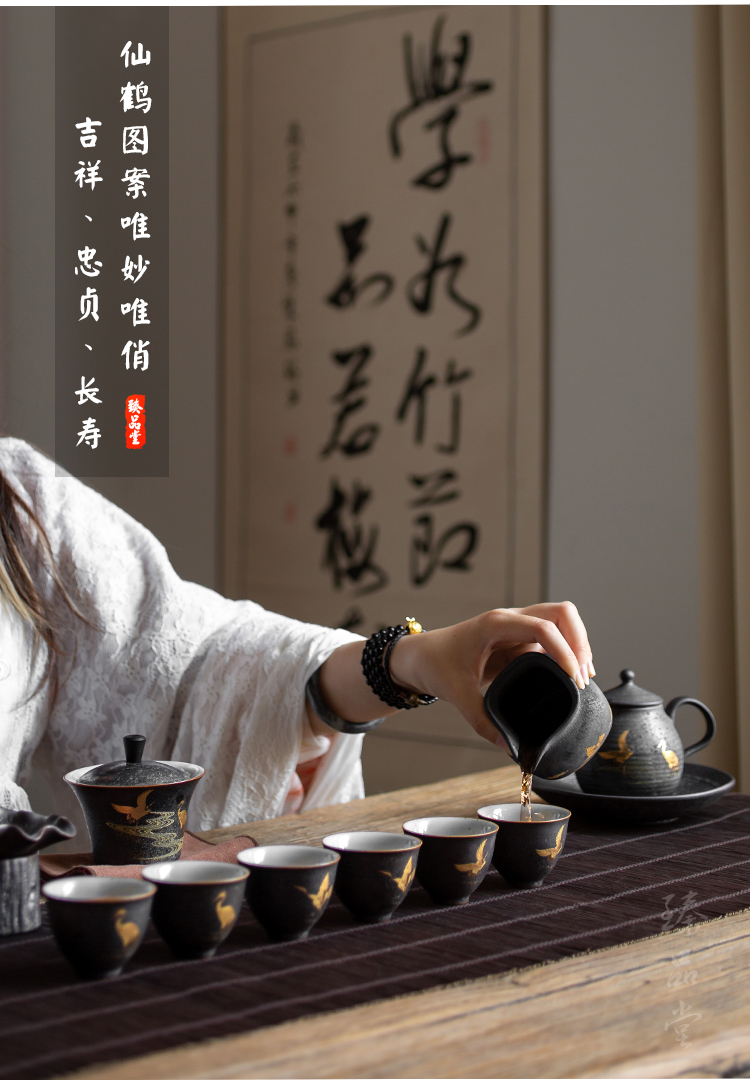 復古中式茶具套裝家用簡約茶藝辦公會客客廳功夫茶壺泡茶陶瓷套裝1入