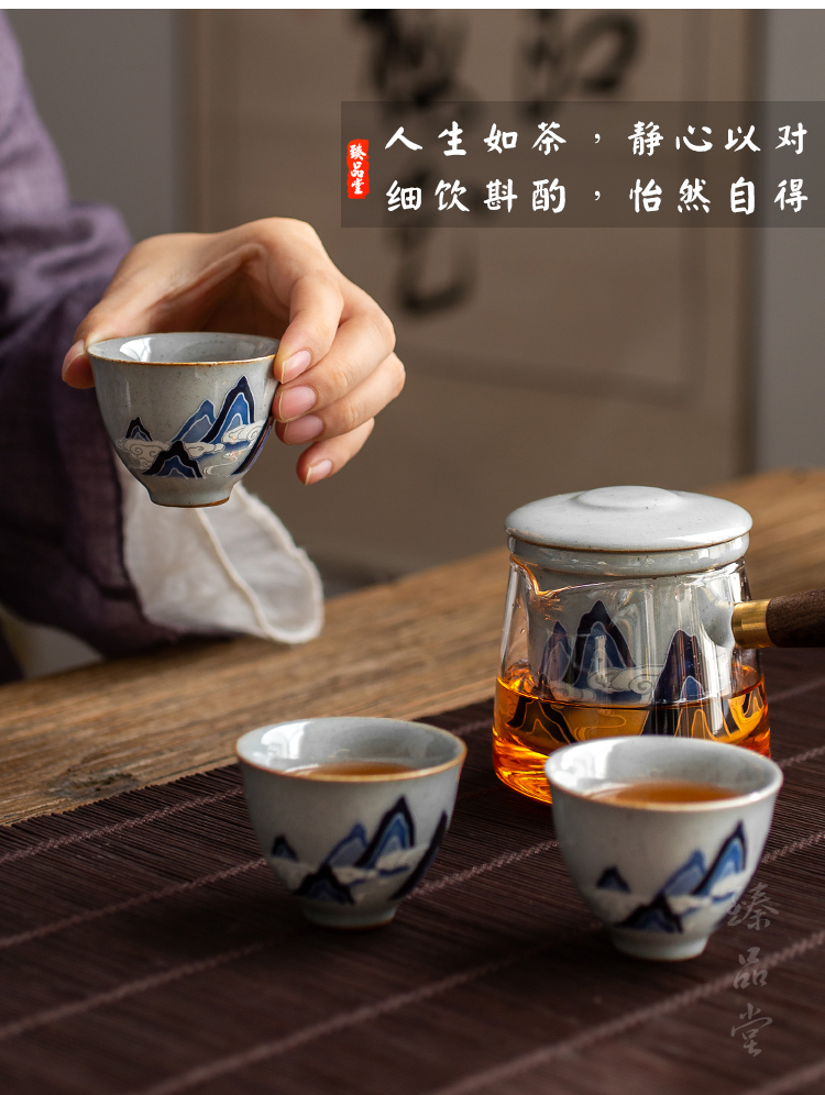 陶瓷快客杯簡約便攜式小套旅行功夫茶具戶外現代一壺三杯側把壺1入