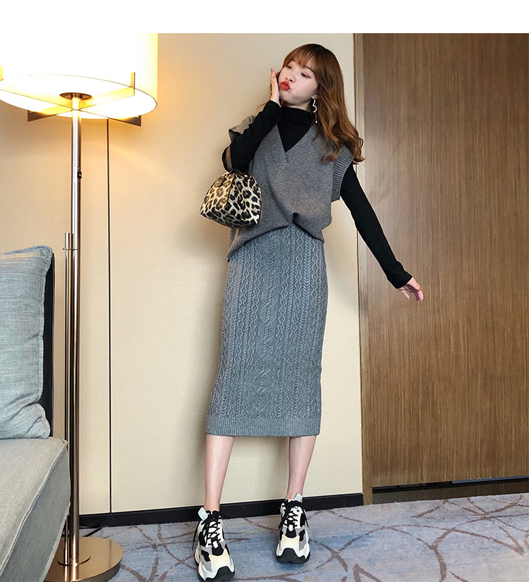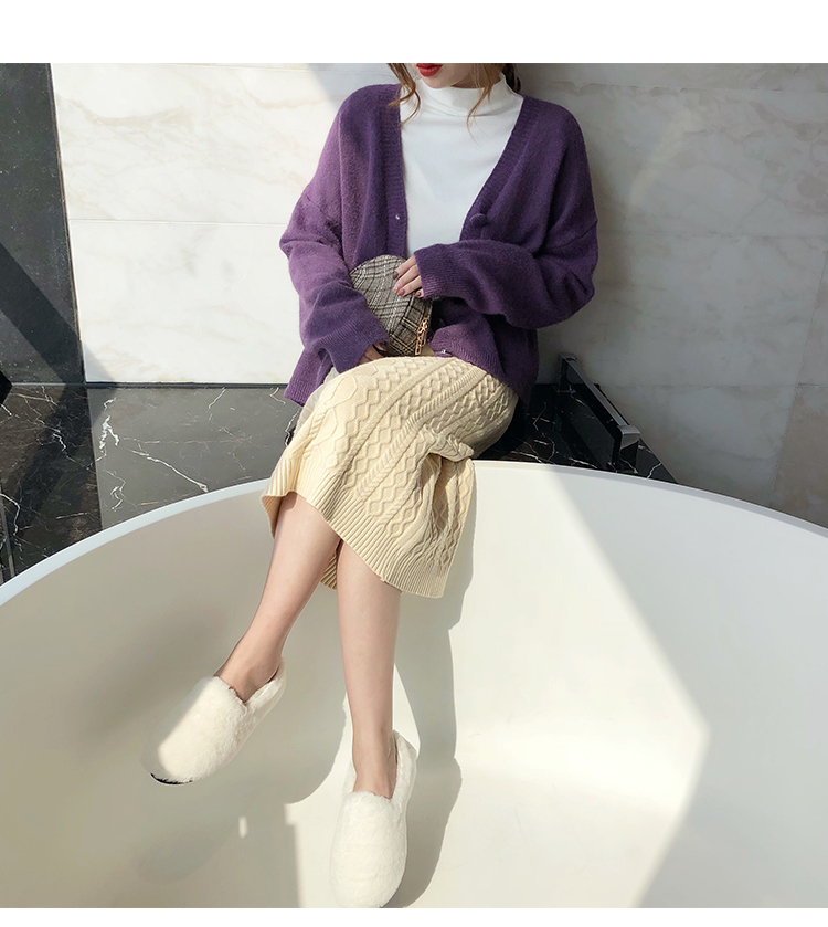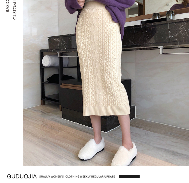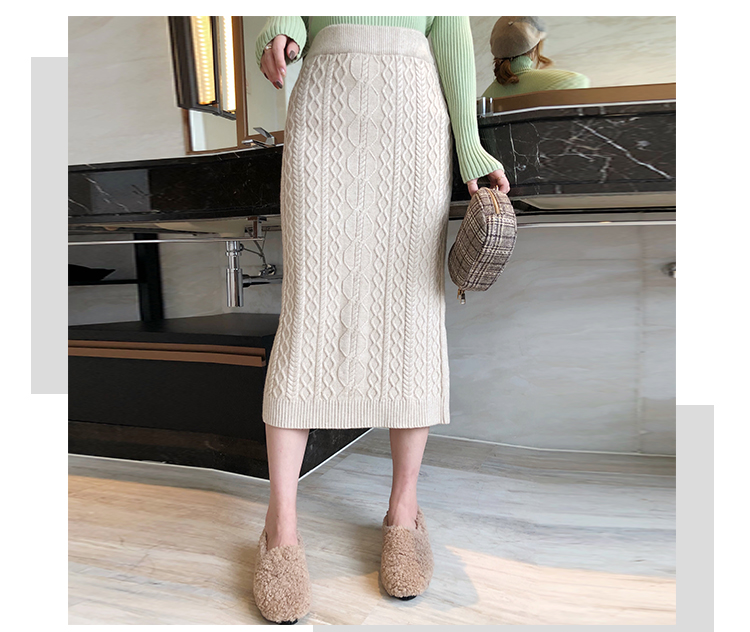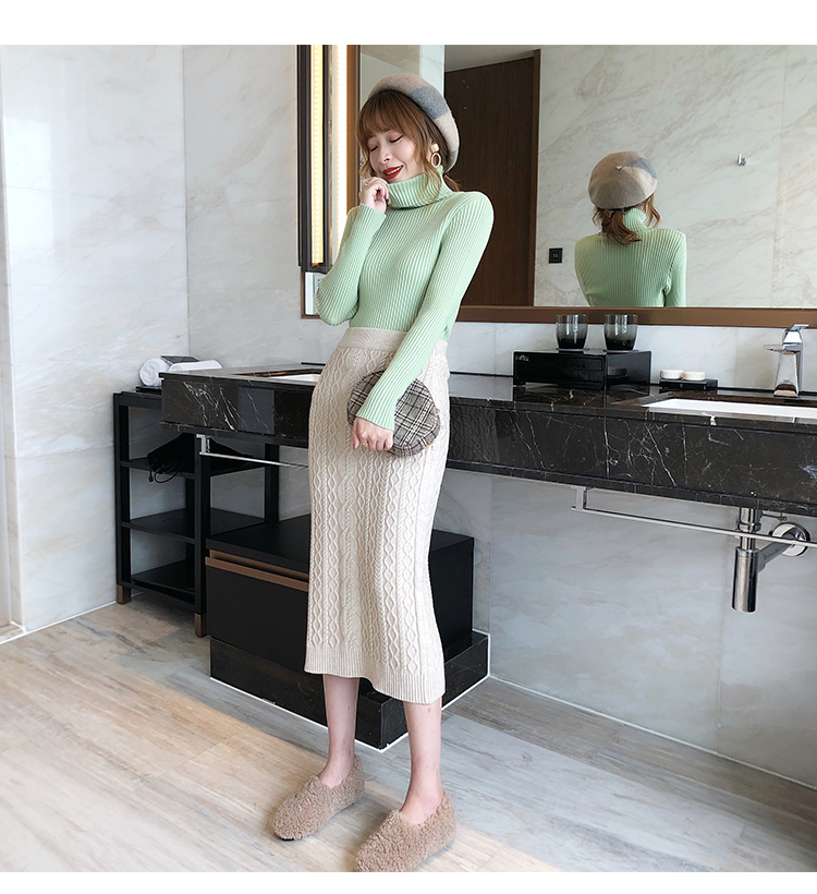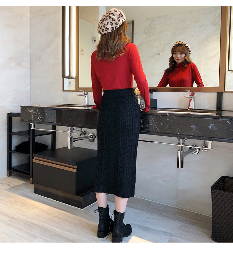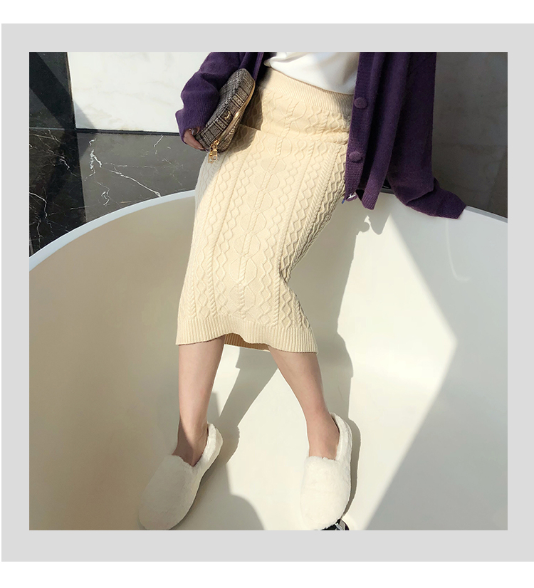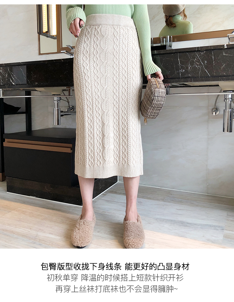 針織裙女半身裙秋冬新款復古高腰顯瘦一步裙中長款包臀毛線裙1入