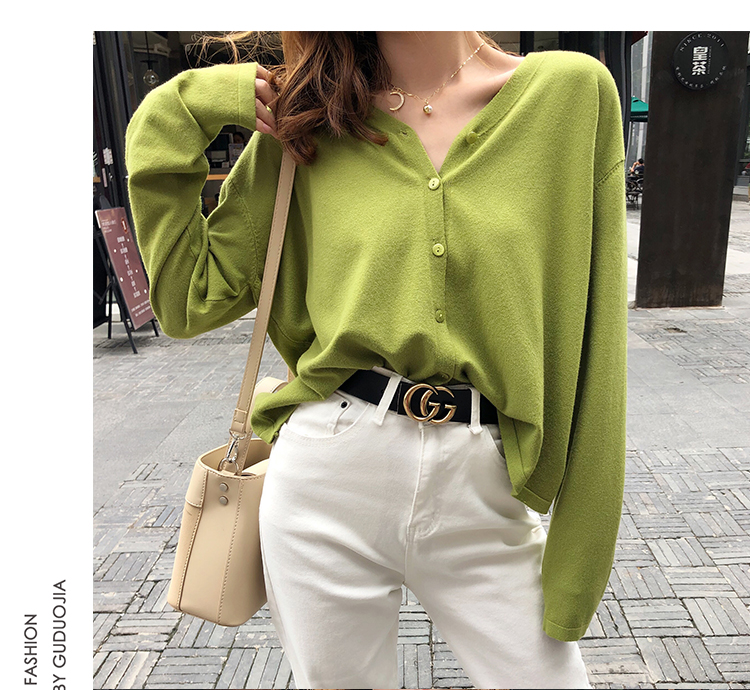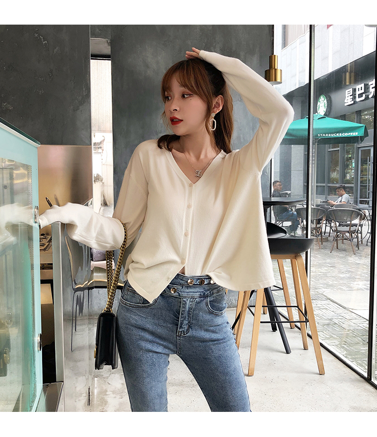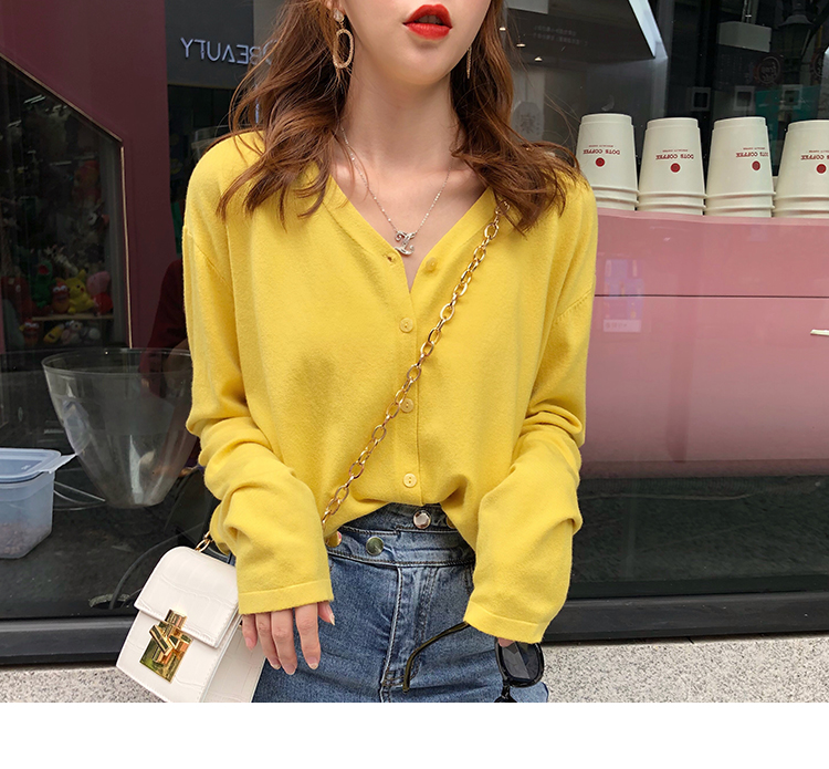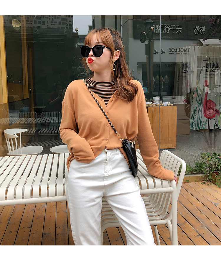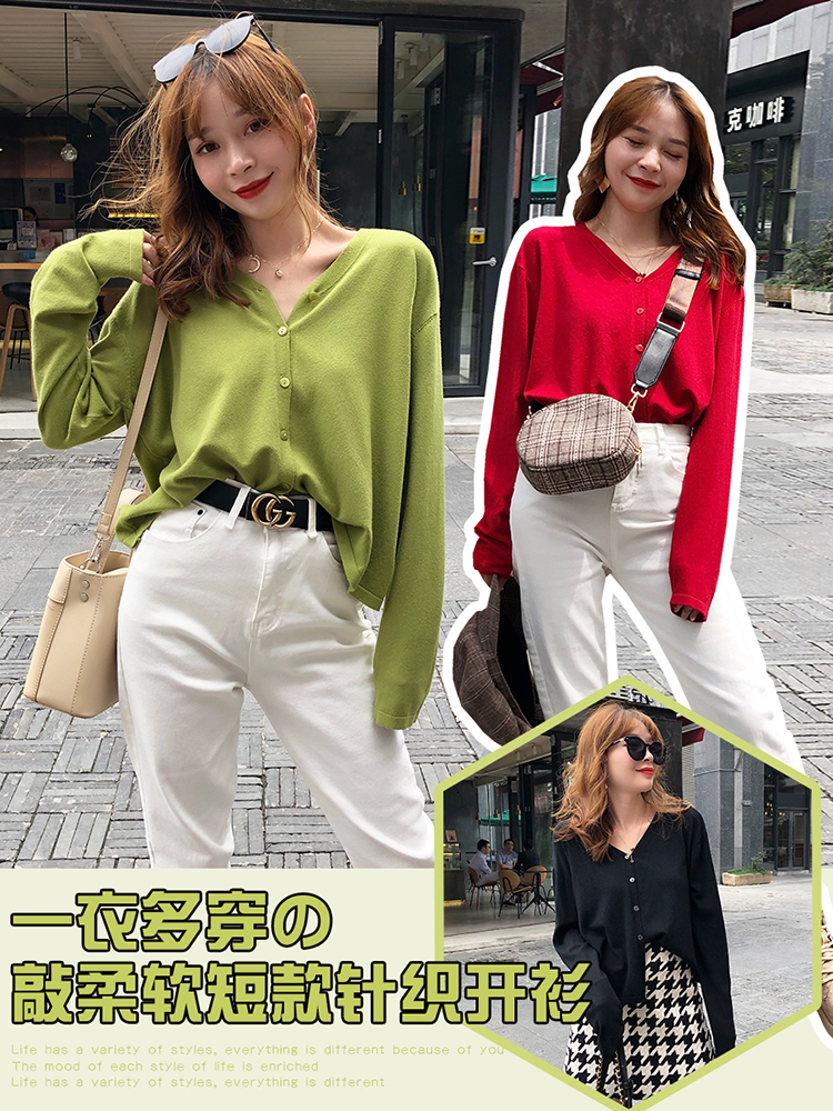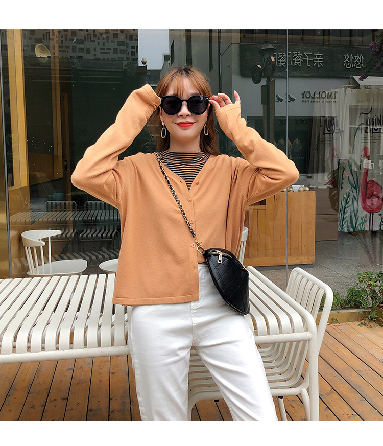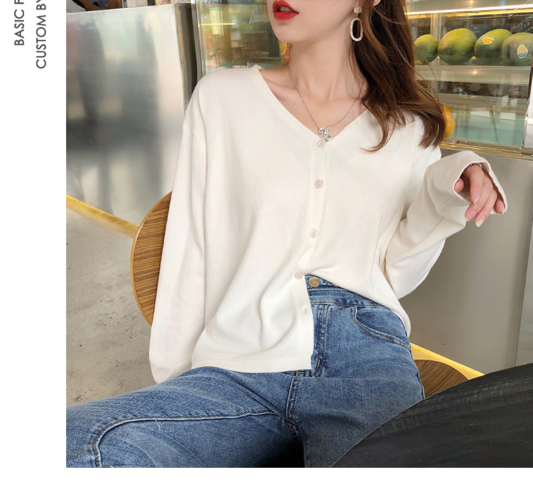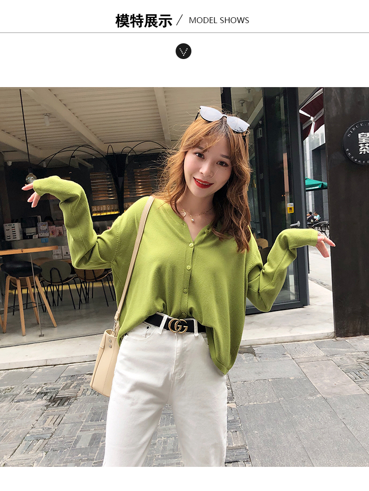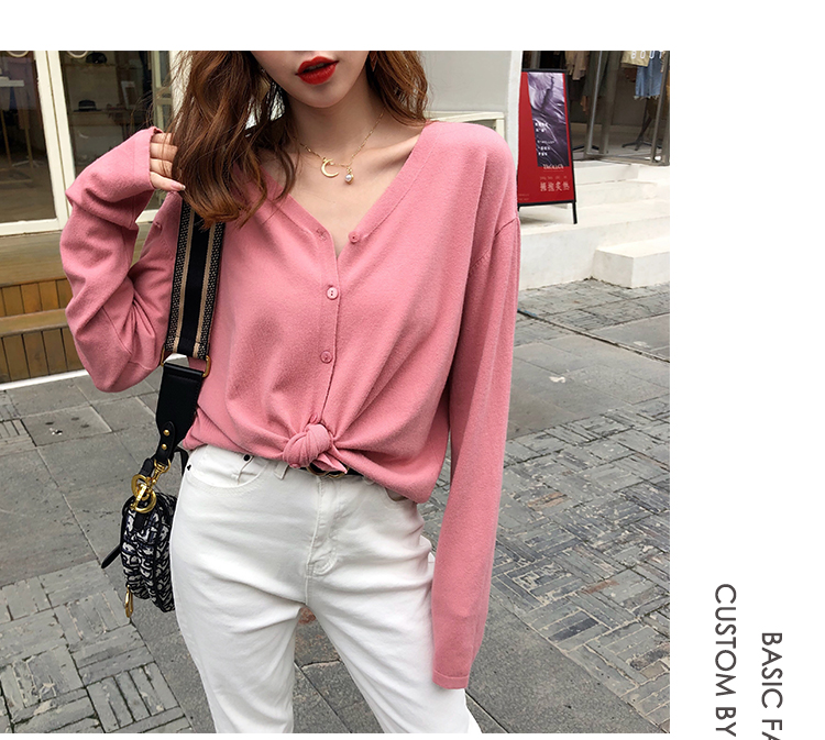 針織外搭開衫外套女薄款春秋季新款百搭V領毛衣寬松長袖上衣1入
