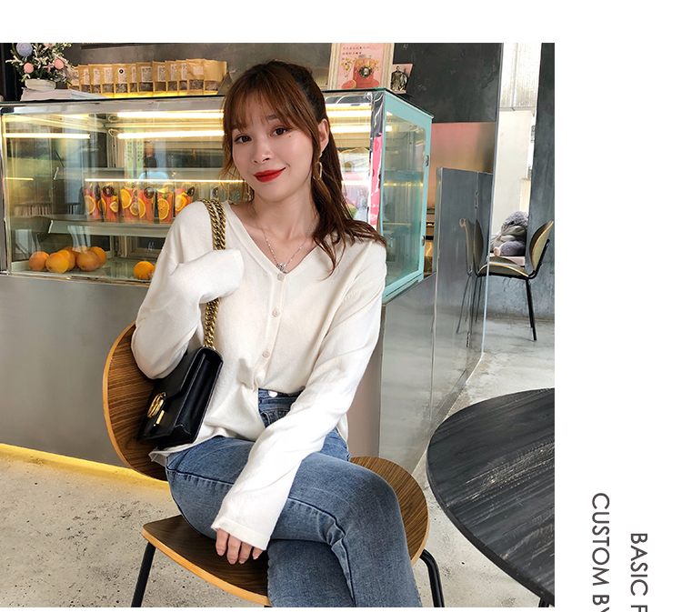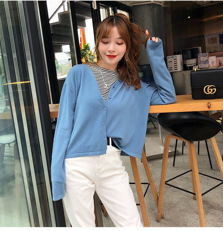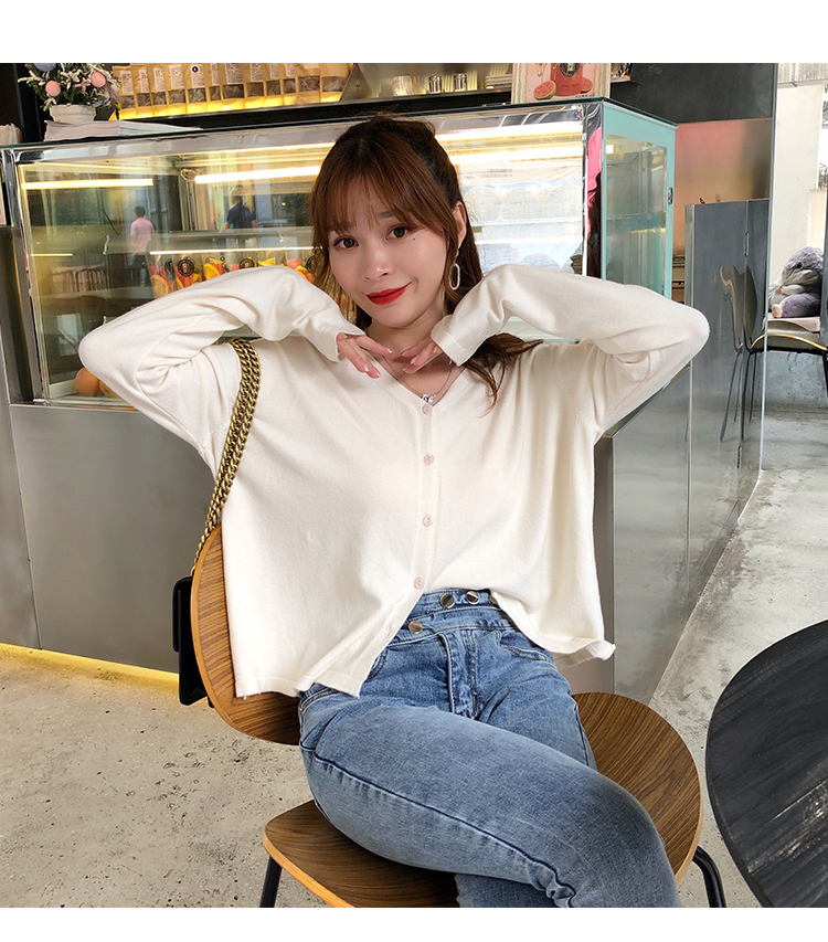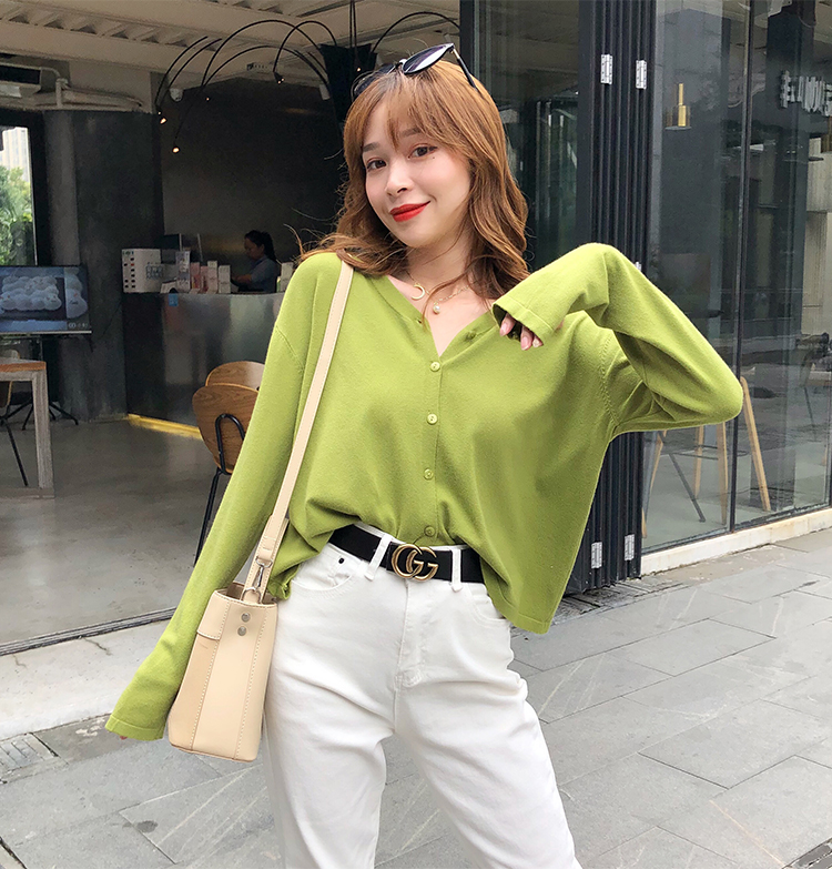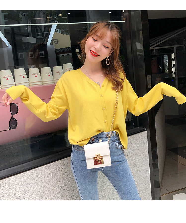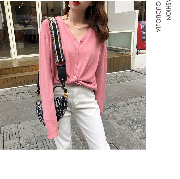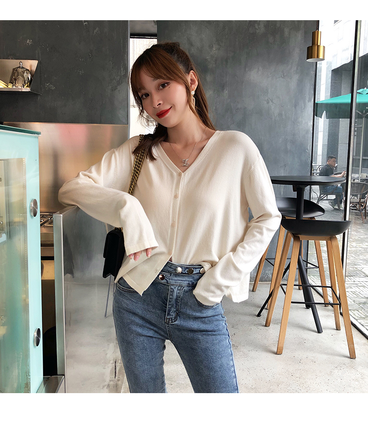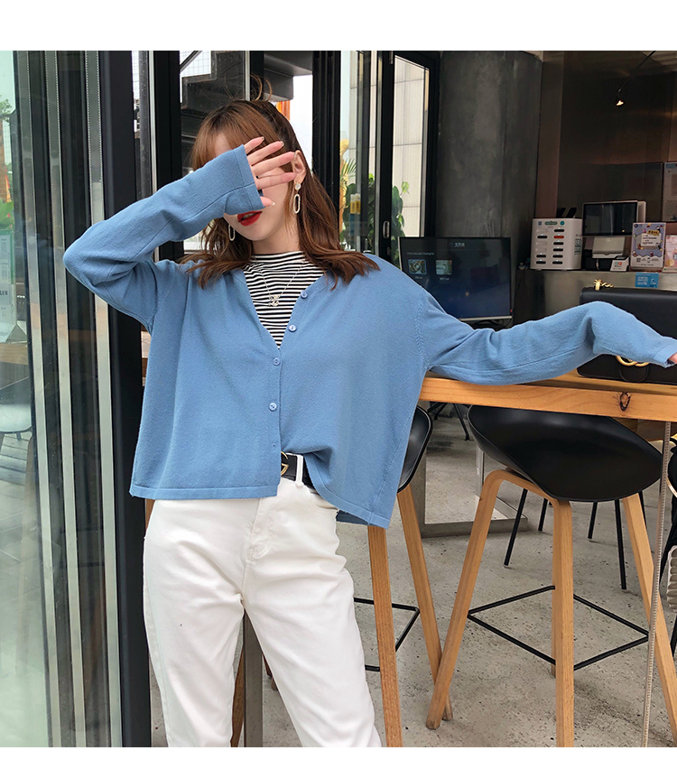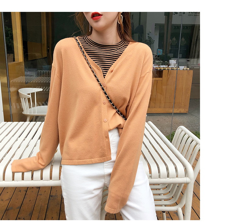 針織外搭開衫外套女薄款春秋季新款百搭V領毛衣寬松長袖上衣1入
