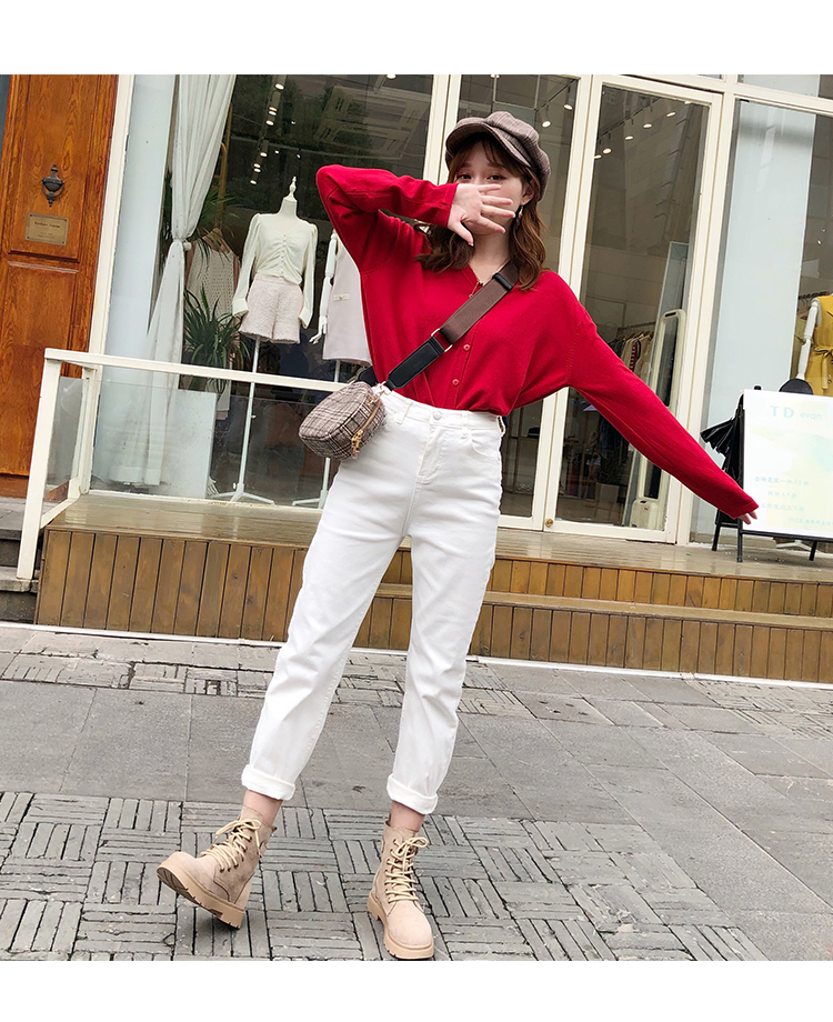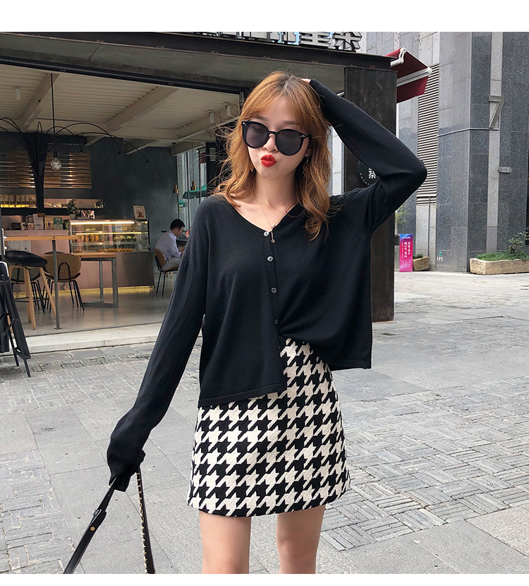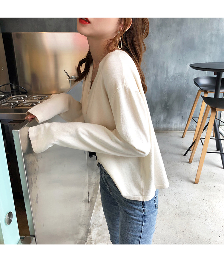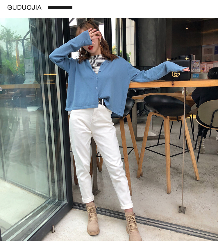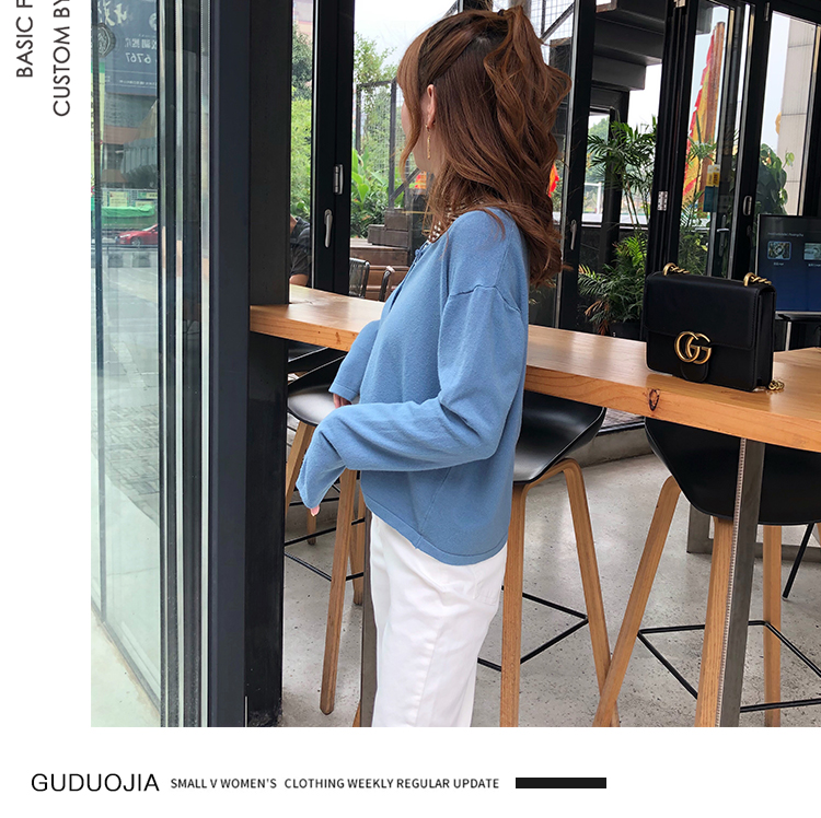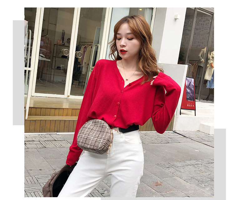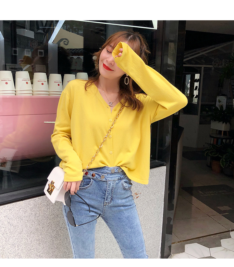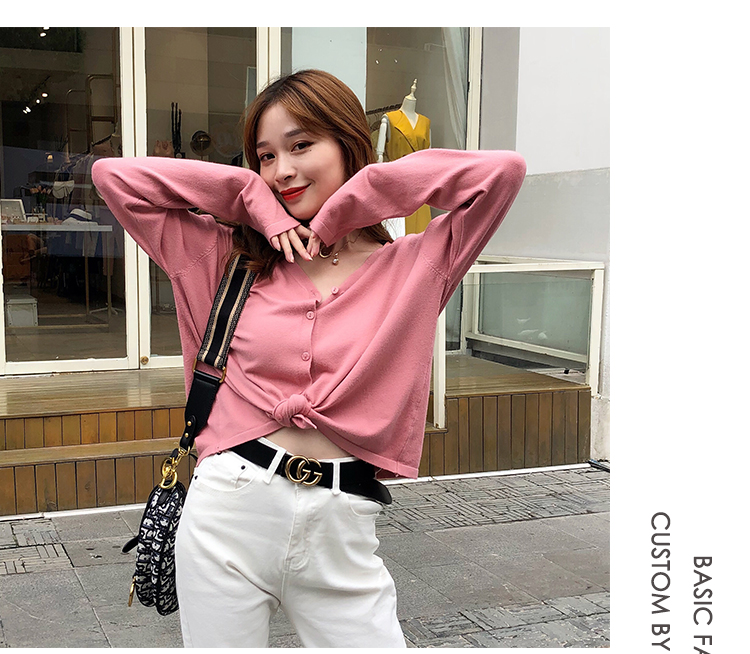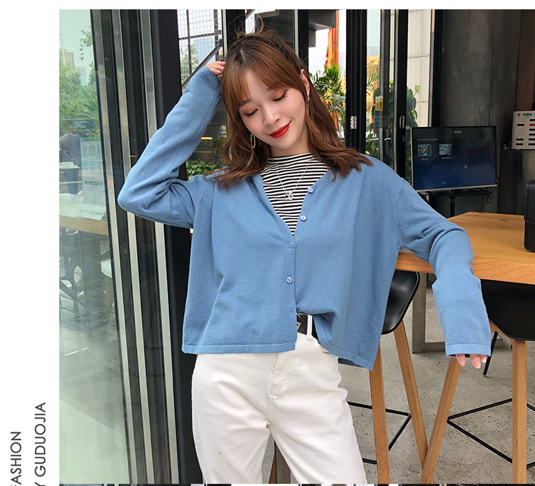 針織外搭開衫外套女薄款春秋季新款百搭V領毛衣寬松長袖上衣1入