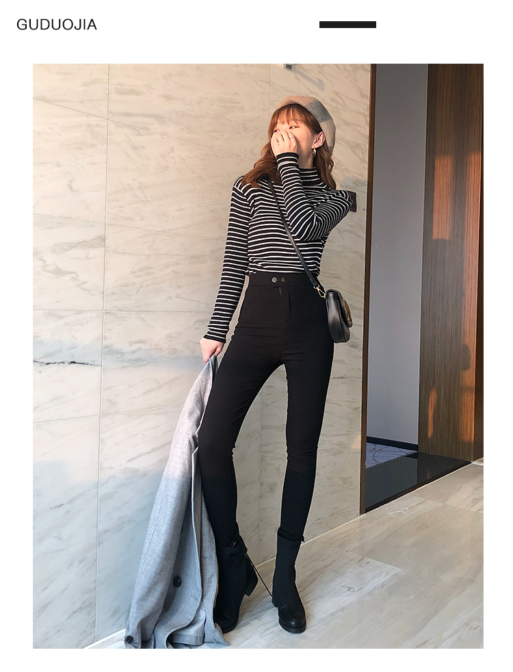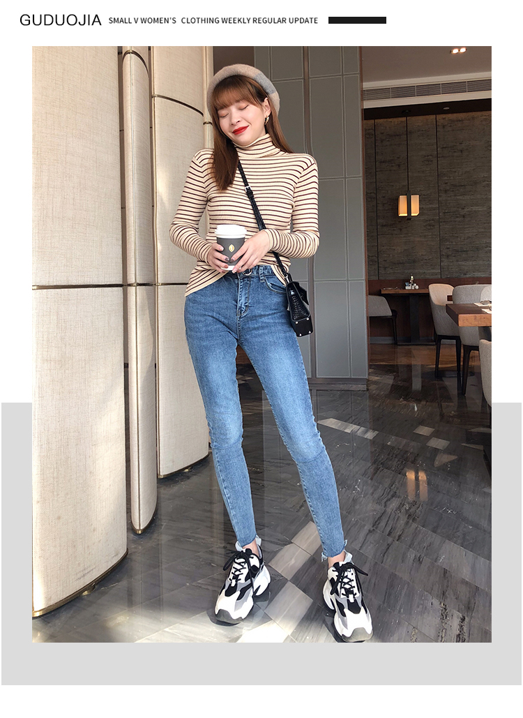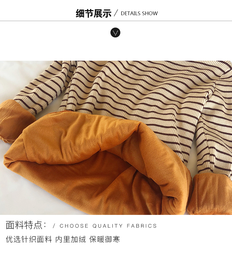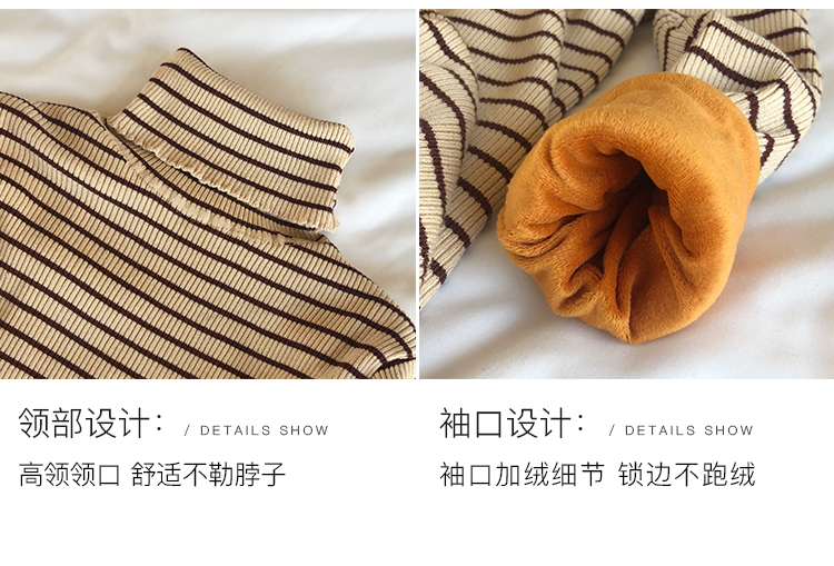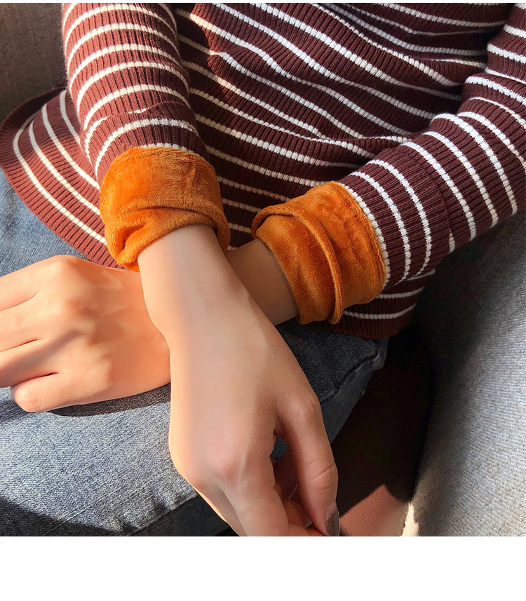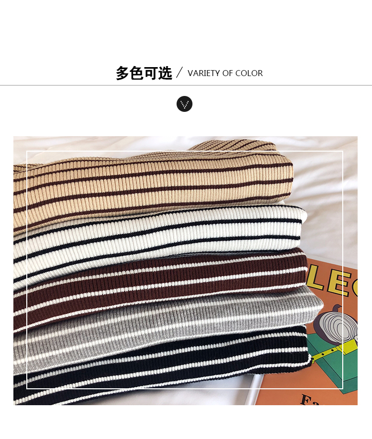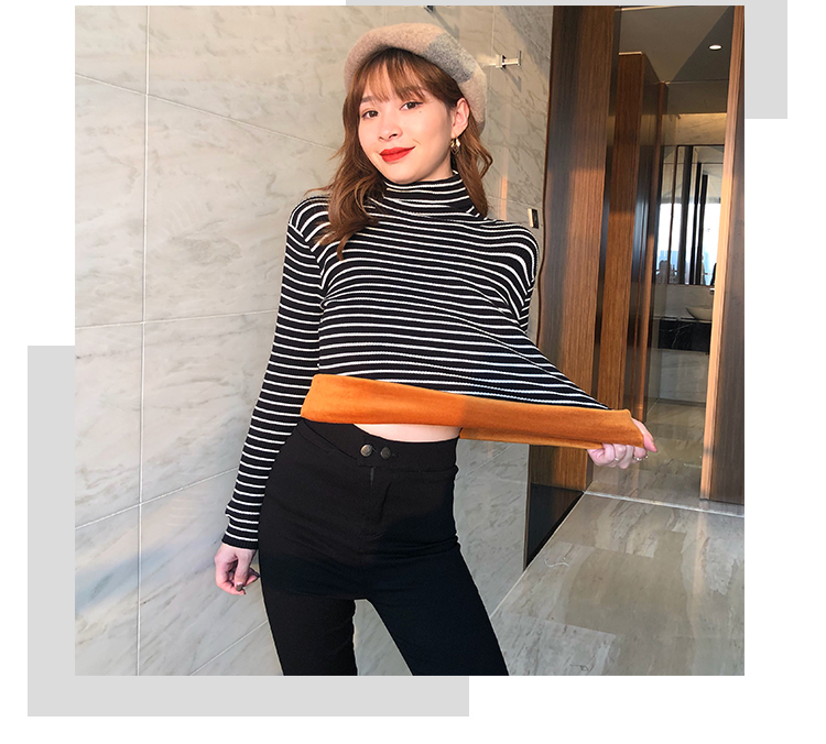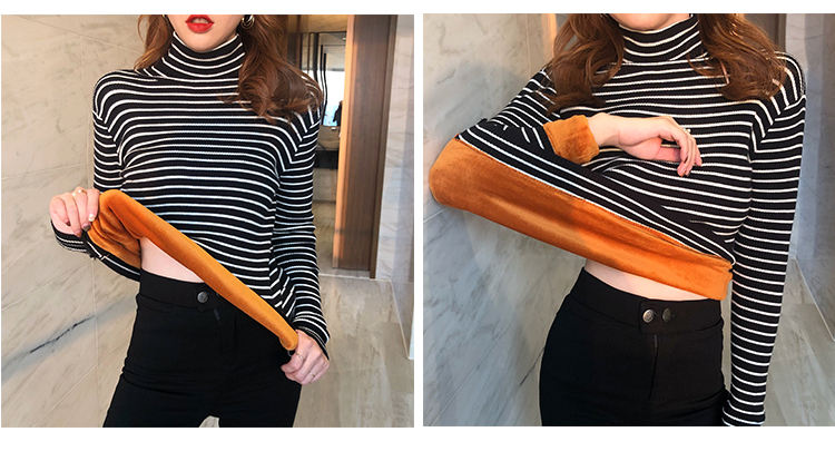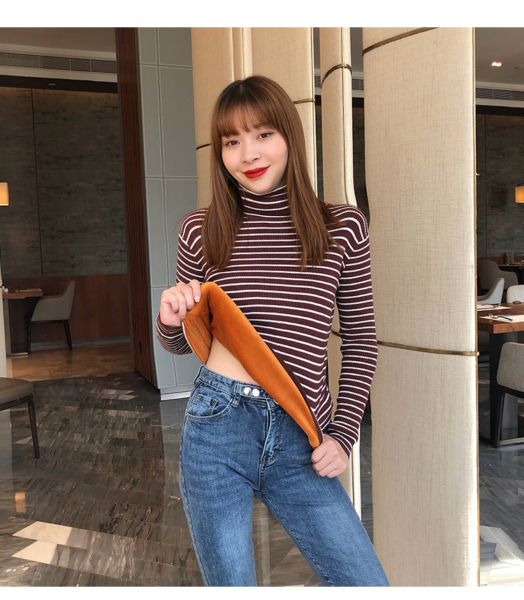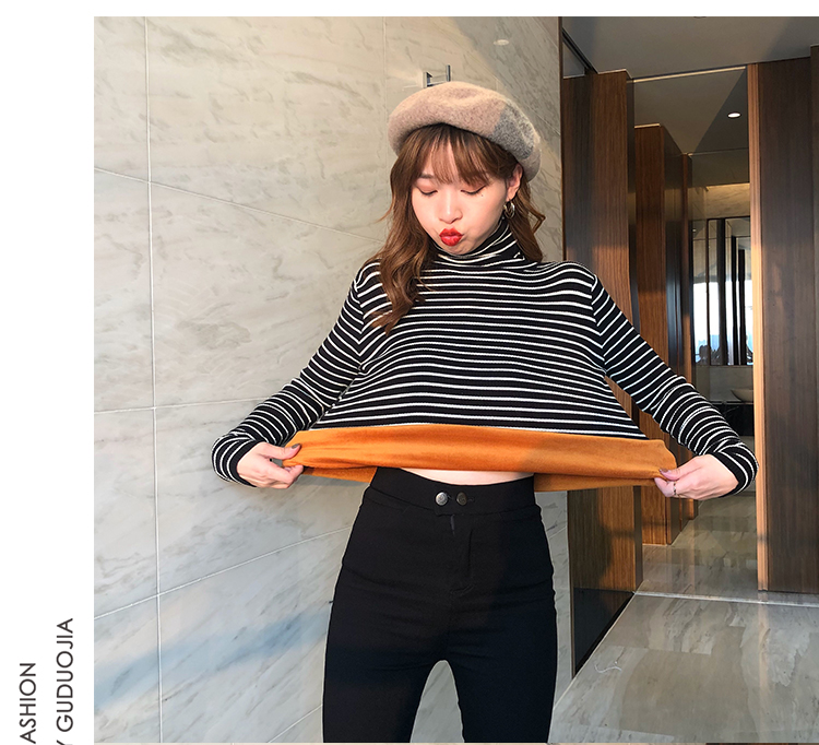 高領毛衣女秋冬新款韓版條紋針織打底衫外穿加絨加厚套頭毛衣1入