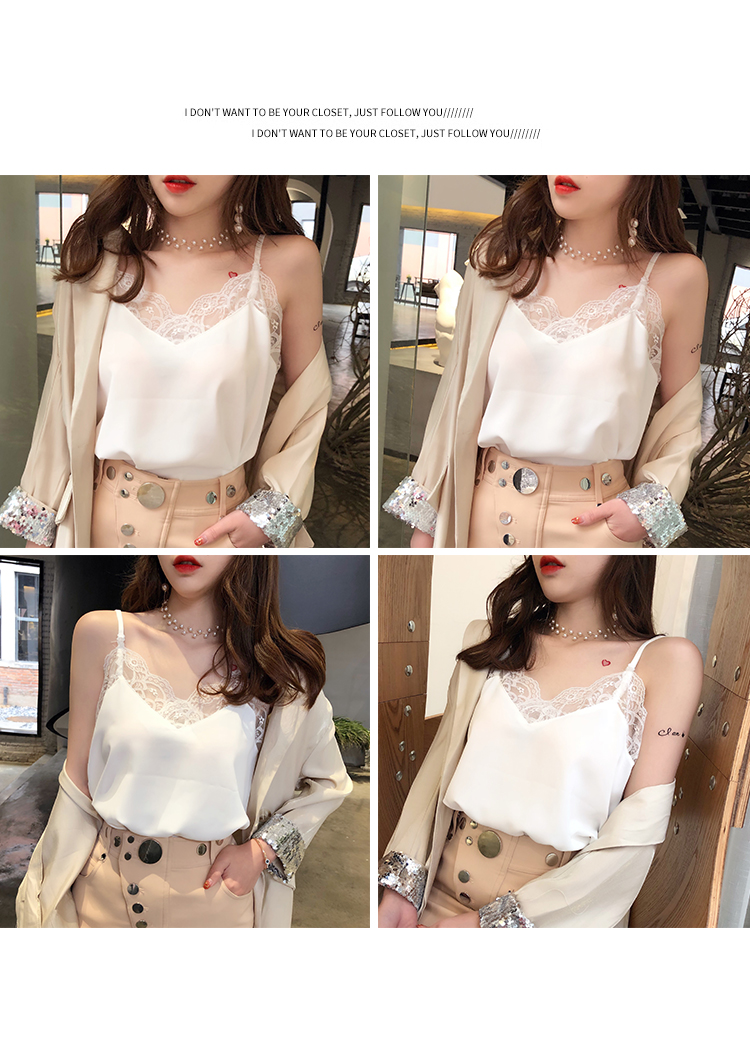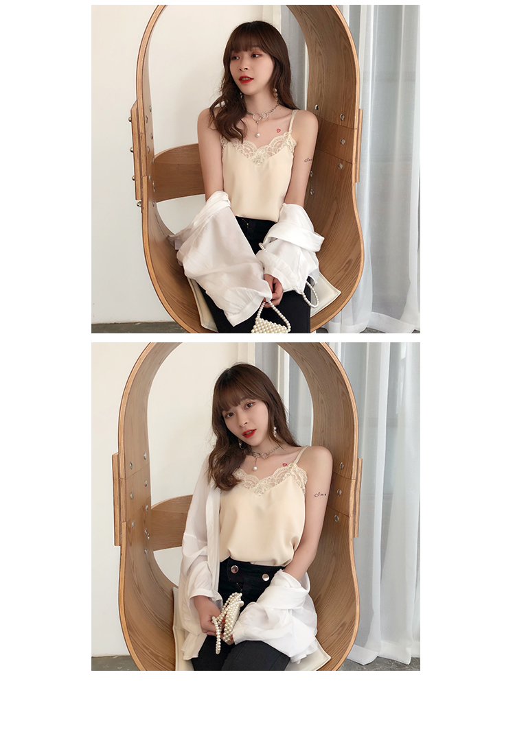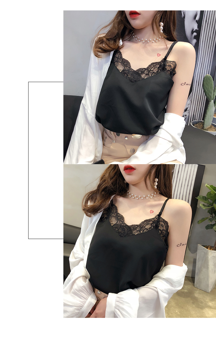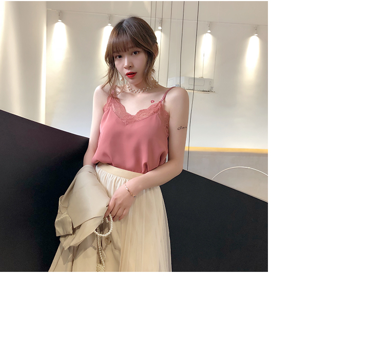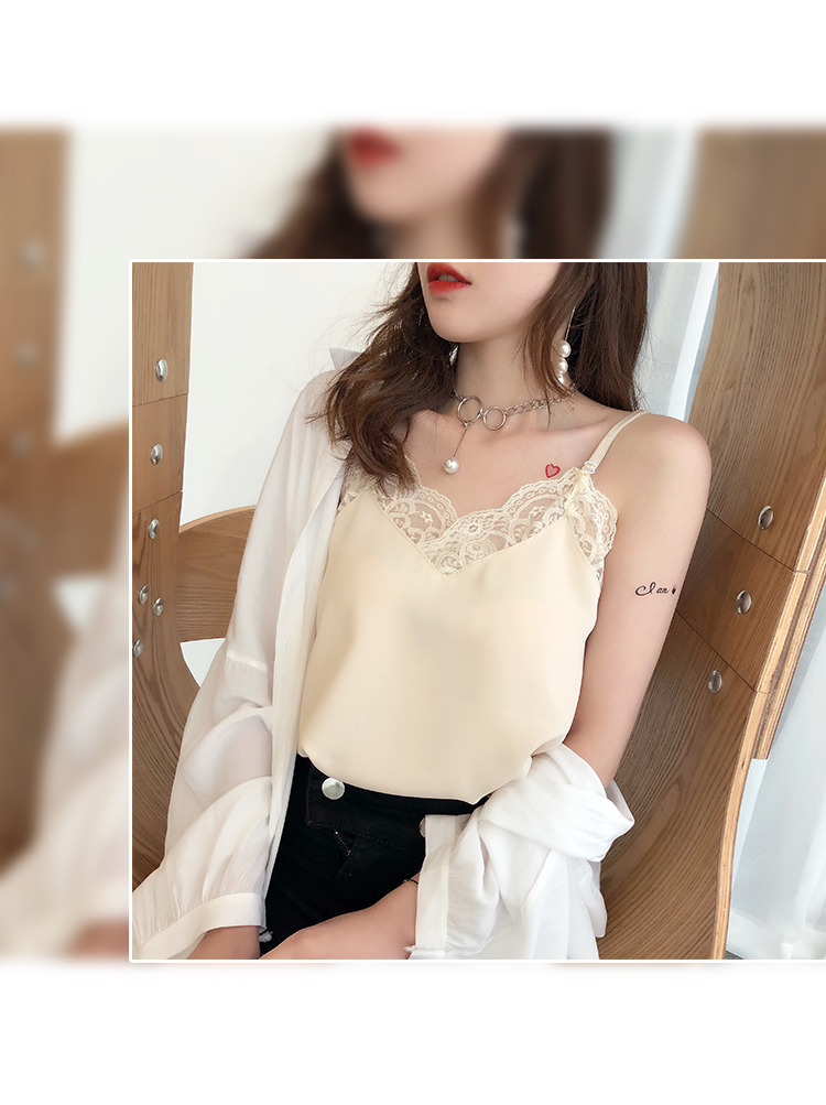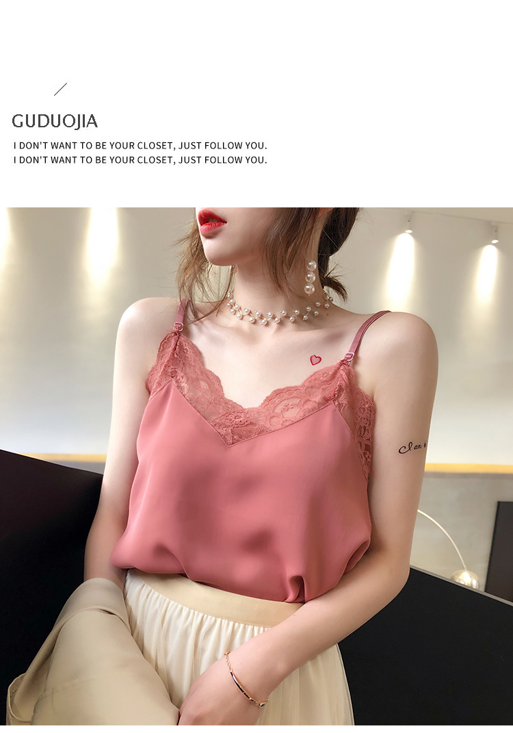 骨朵家蕾絲緞面內搭小吊帶女心機雪紡寬松外穿無袖打底背心上衣夏1入