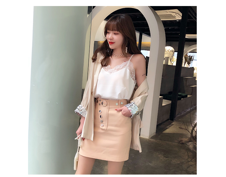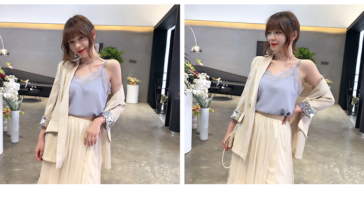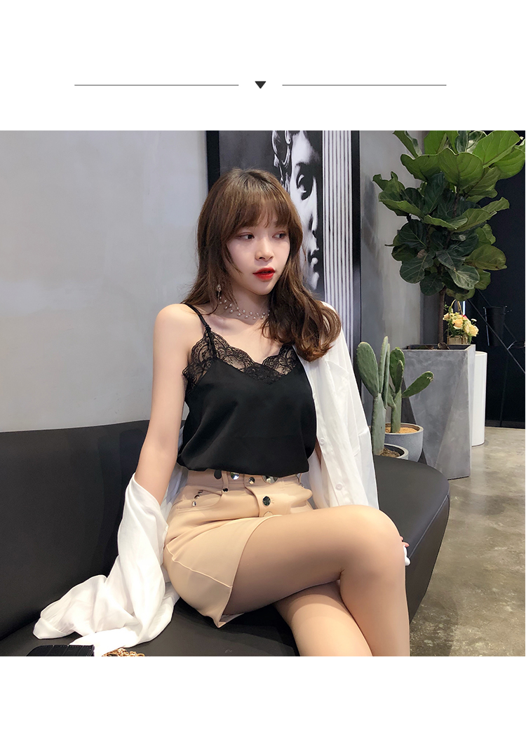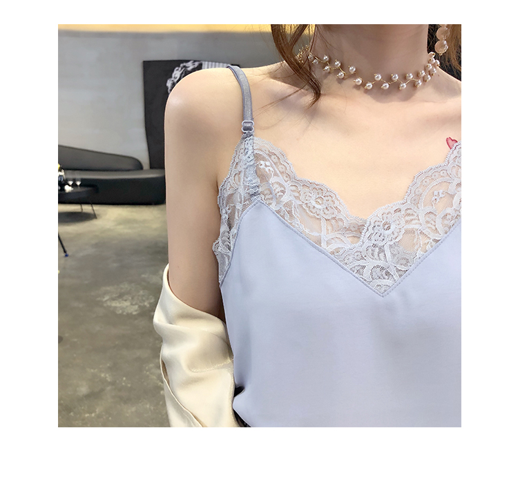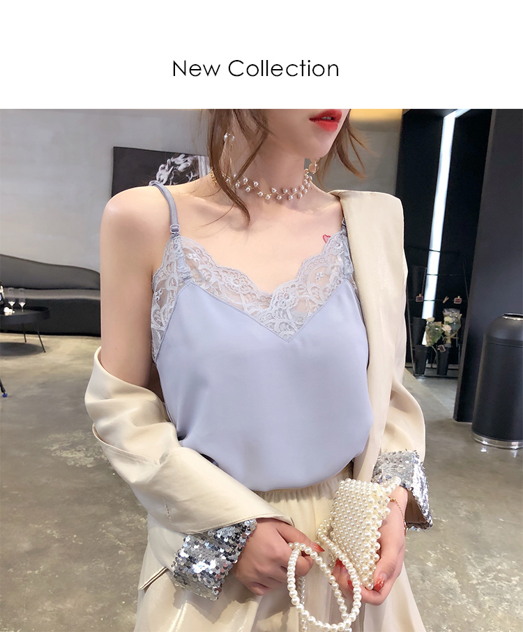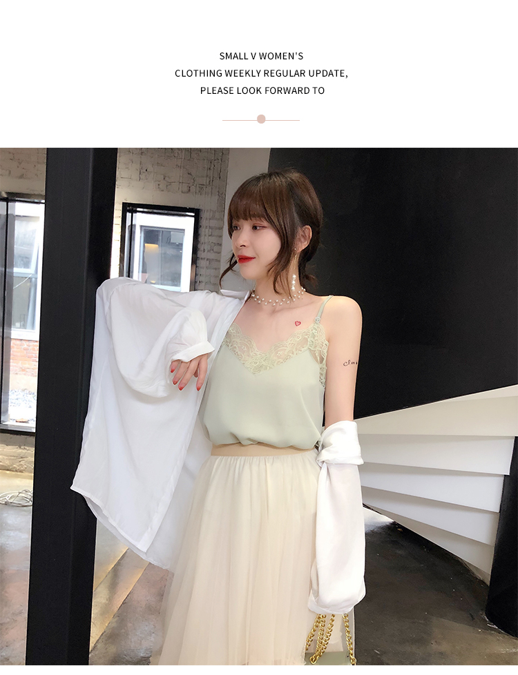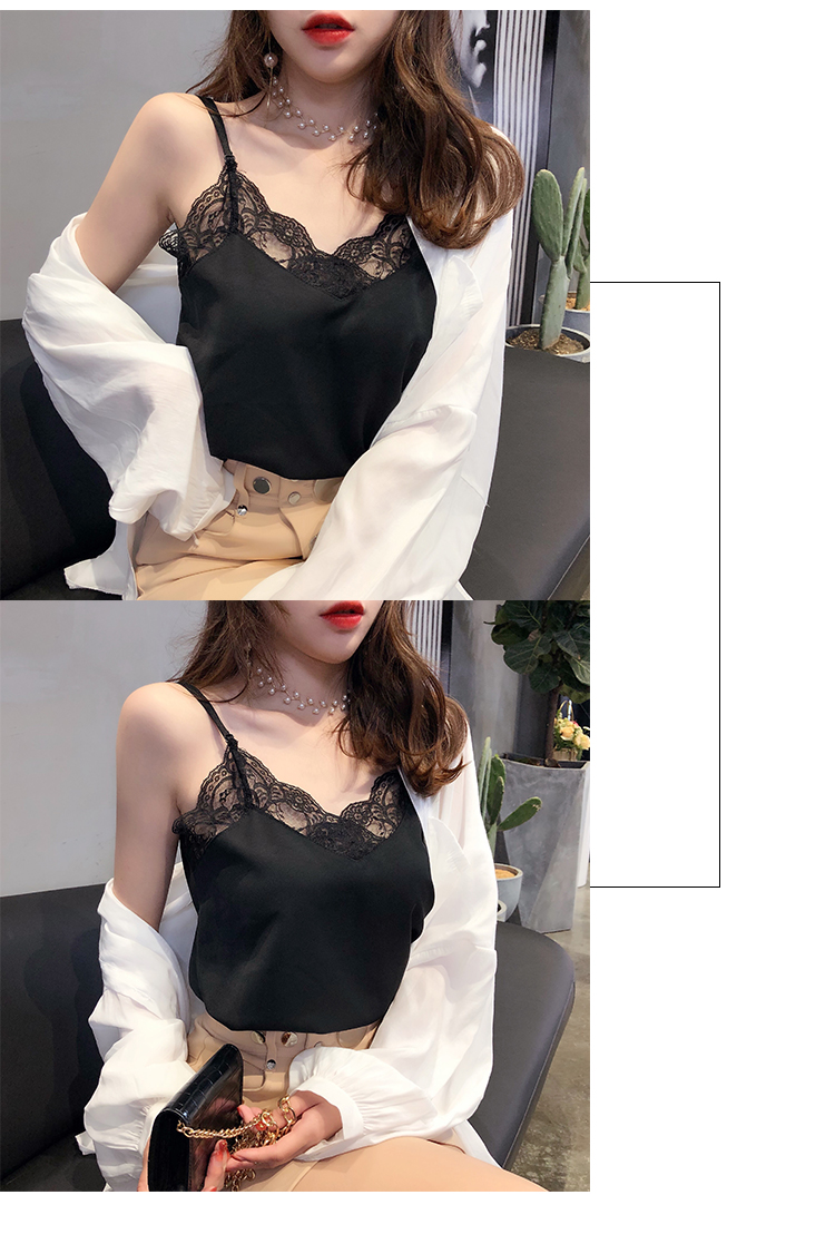 骨朵家蕾絲緞面內搭小吊帶女心機雪紡寬松外穿無袖打底背心上衣夏1入