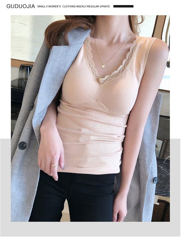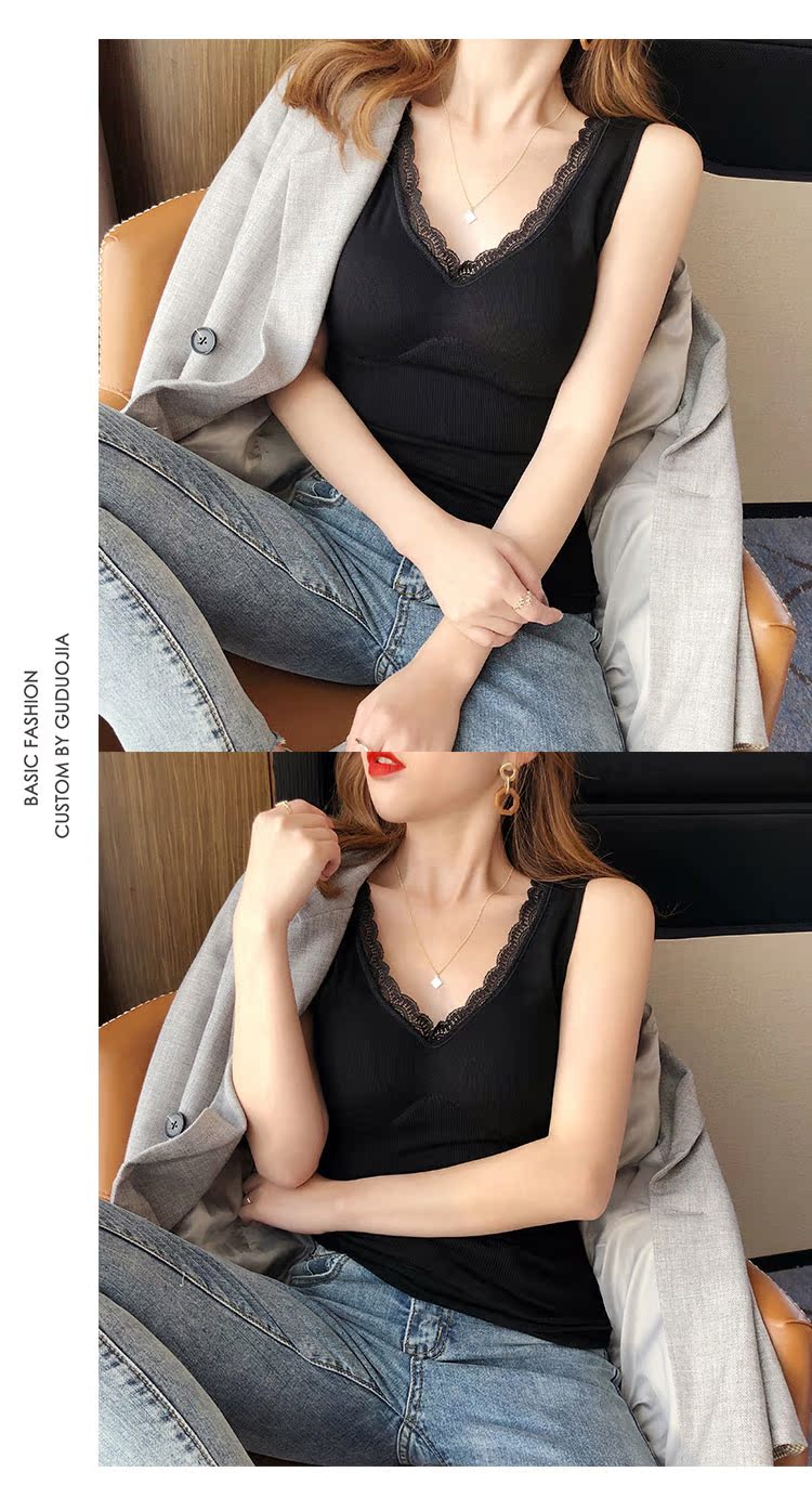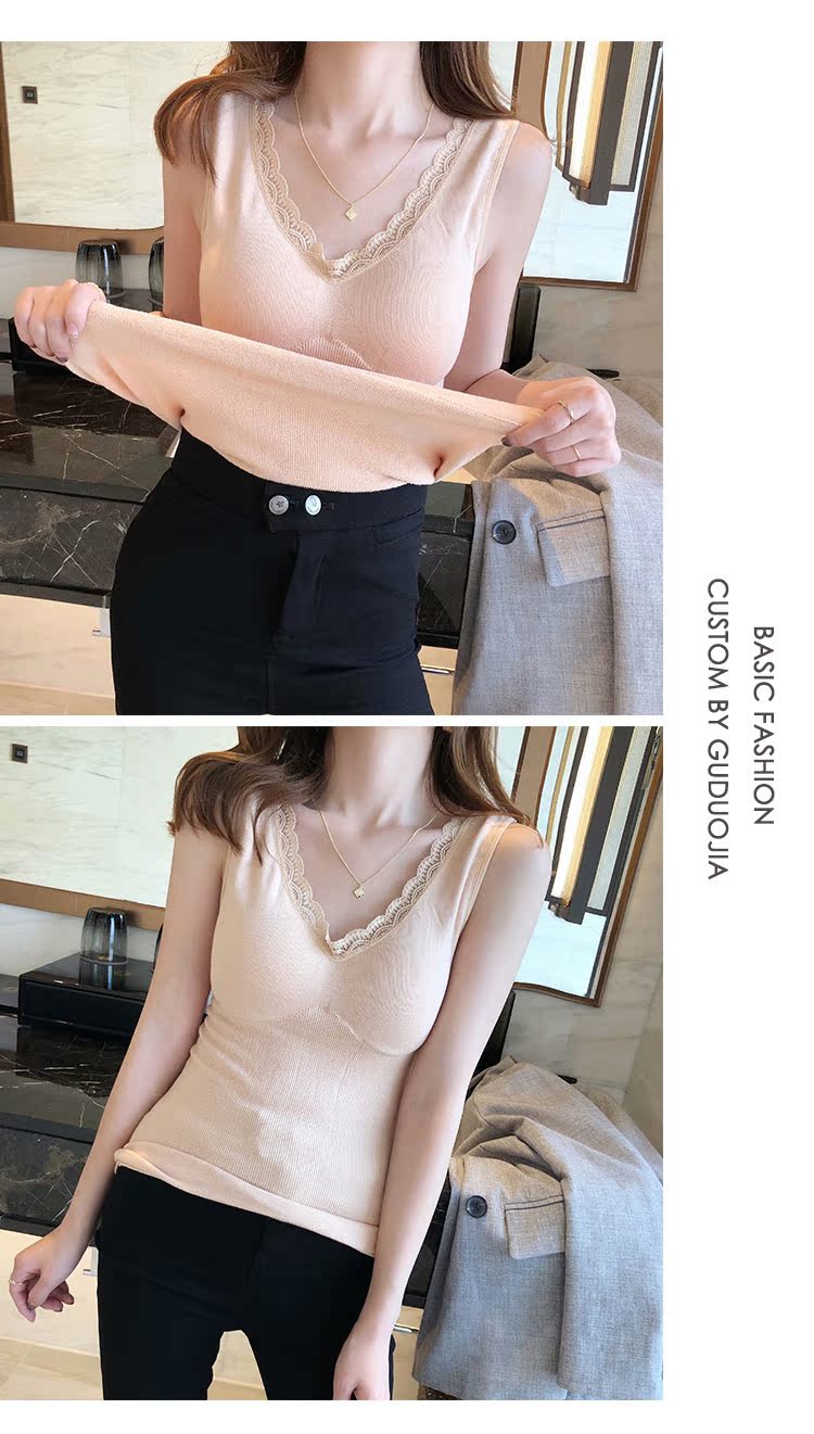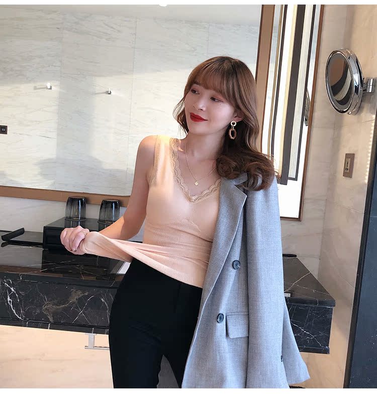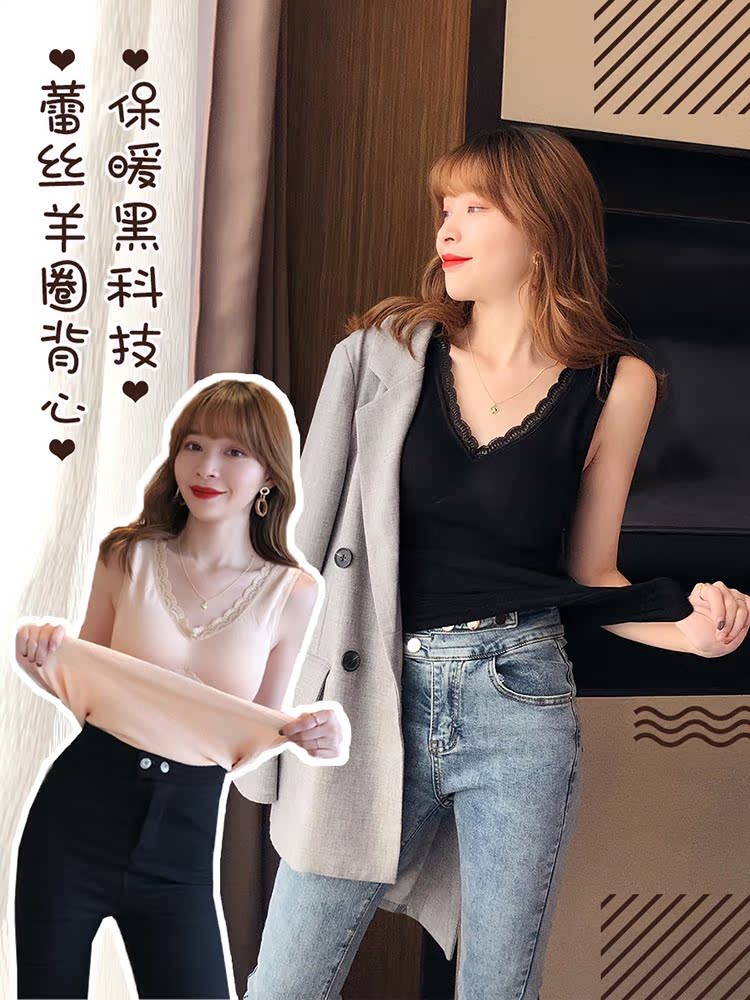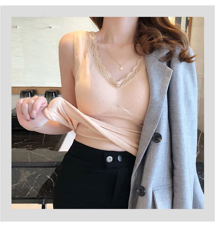 西裝內搭女秋冬新款蕾絲無袖打底背心內搭小吊帶加厚保暖內衣1入