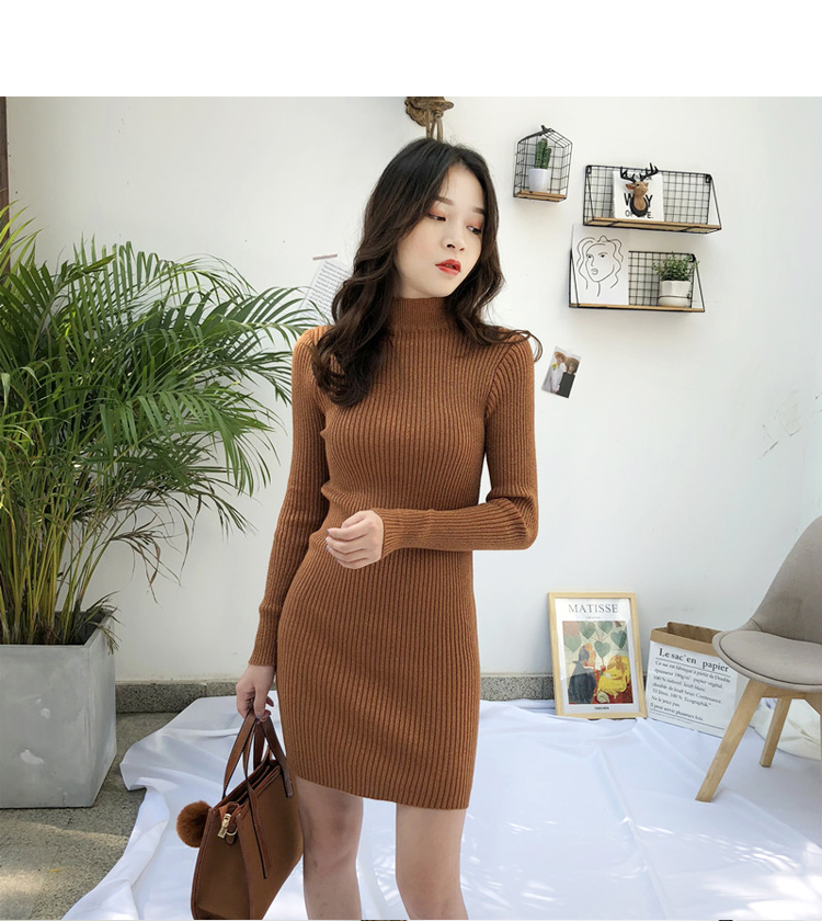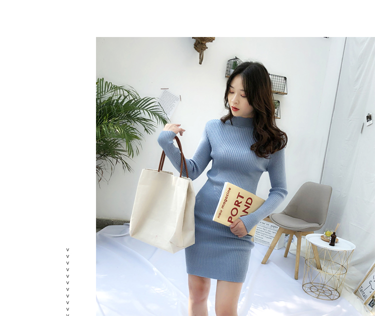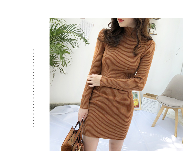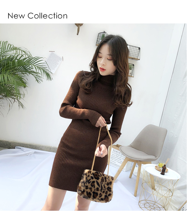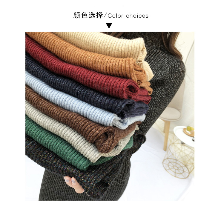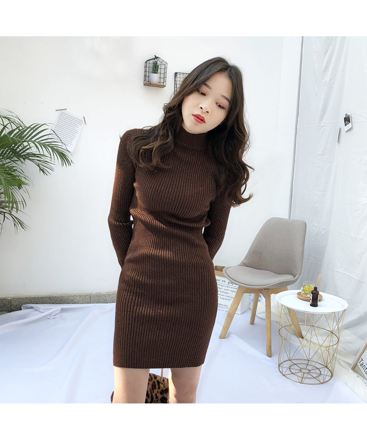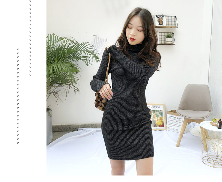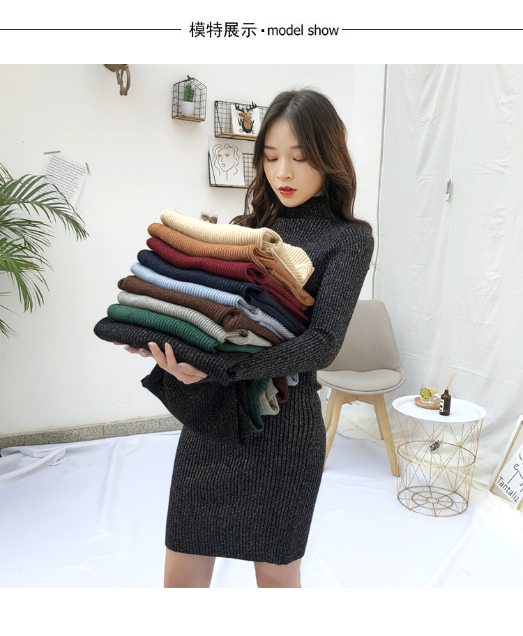 針織連衣裙女秋冬裝新款氣質復古半高領亮絲包臀打底裙中長款毛衣1入