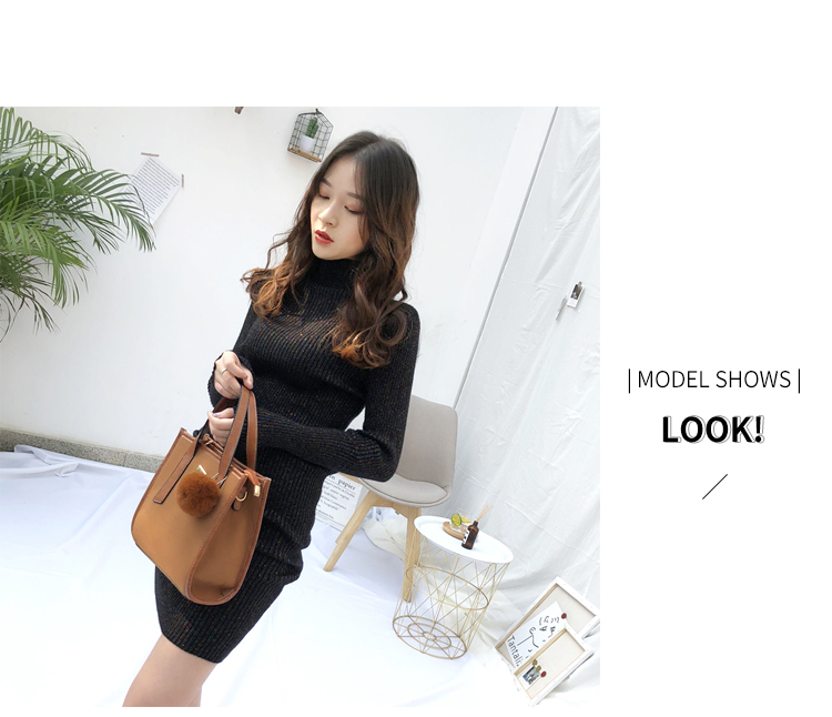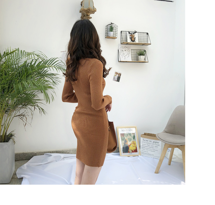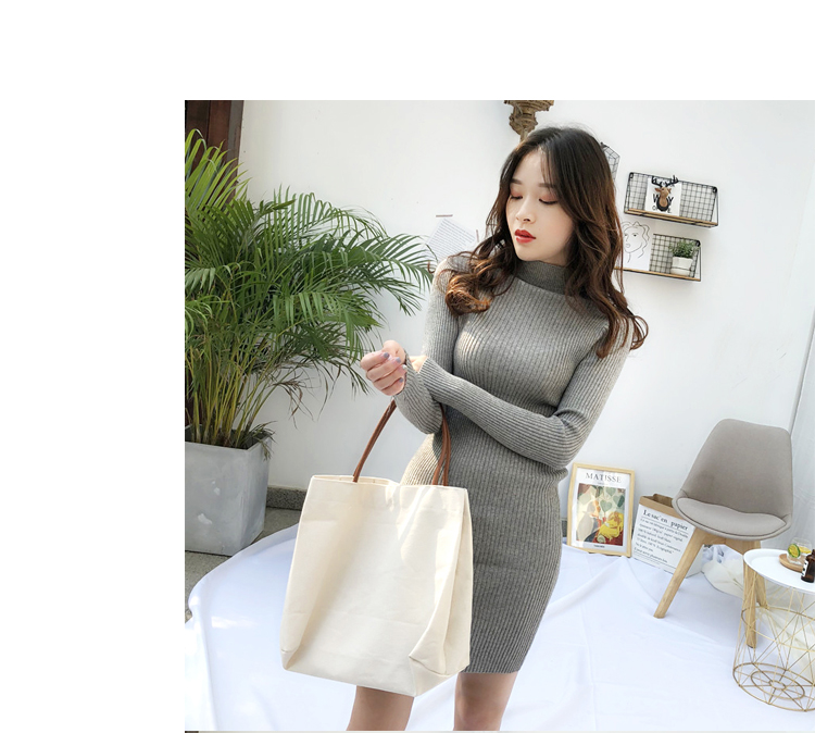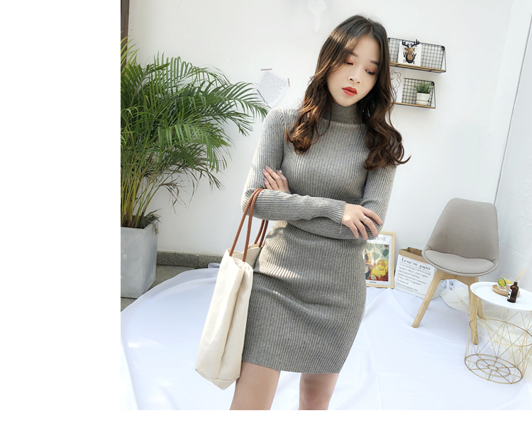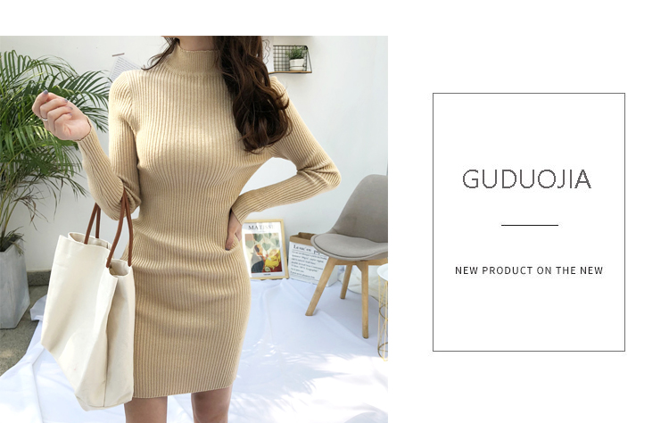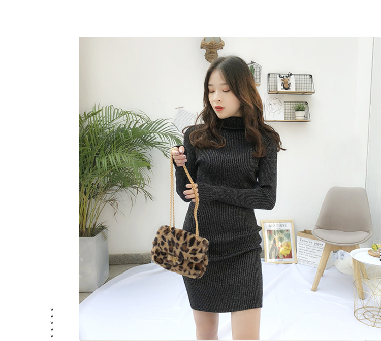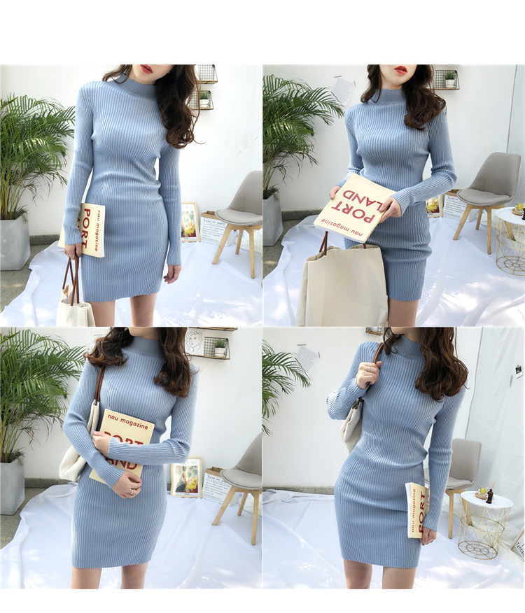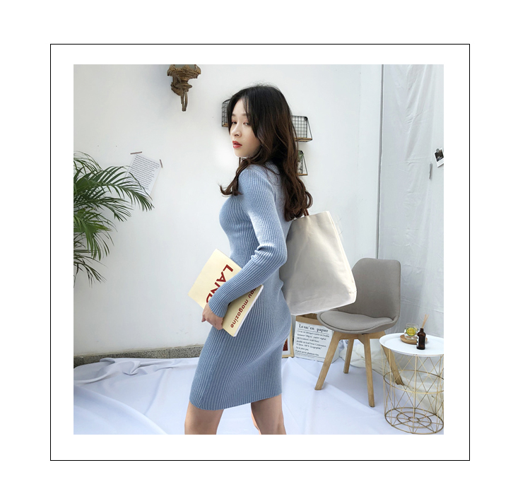 針織連衣裙女秋冬裝新款氣質復古半高領亮絲包臀打底裙中長款毛衣1入