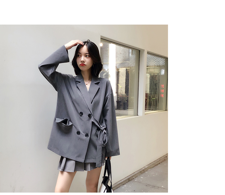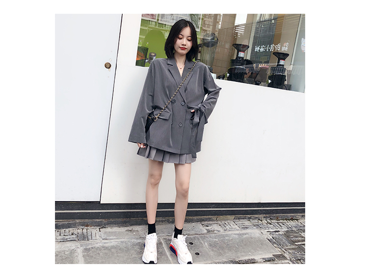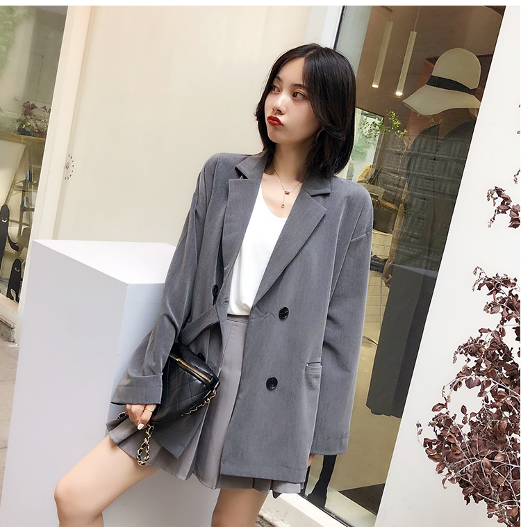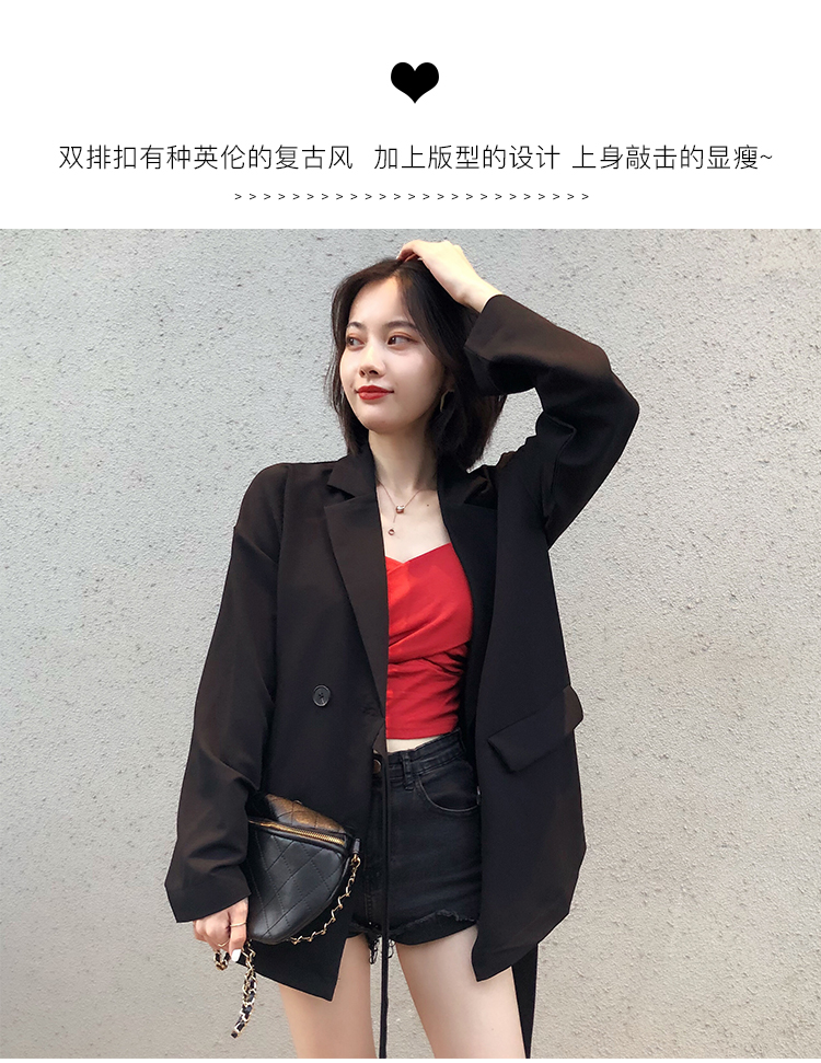 西服女上衣春秋新款寬松復古英倫風網紅設計感小眾西裝外套潮1入