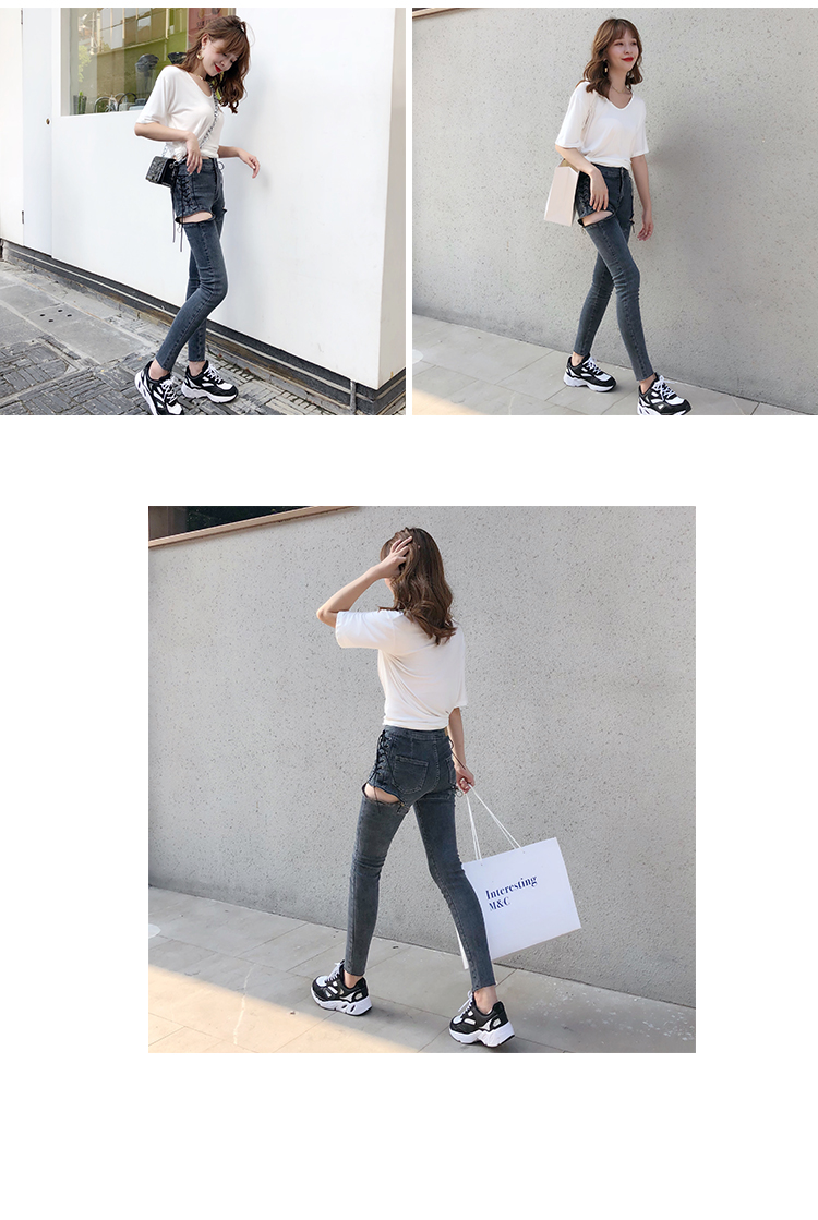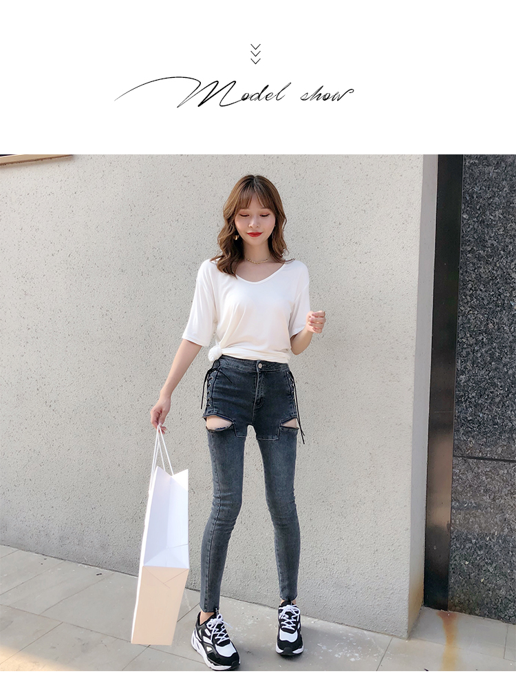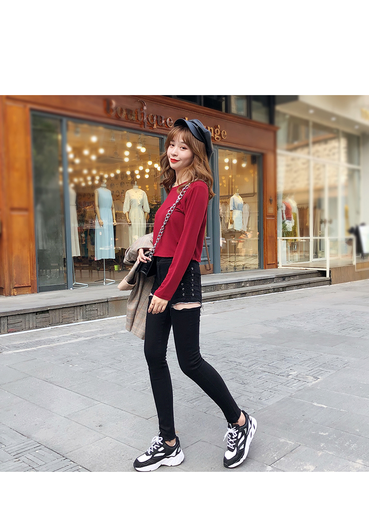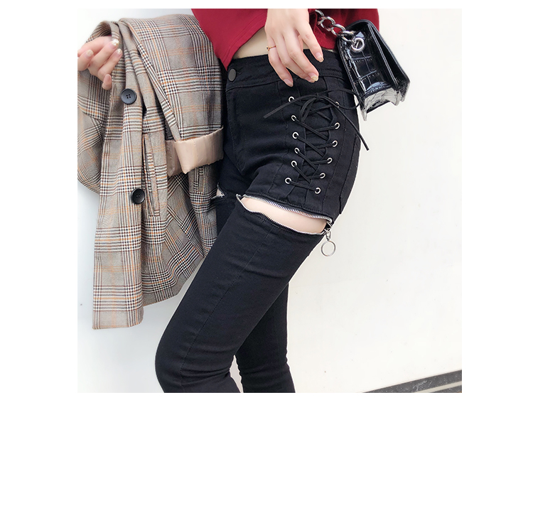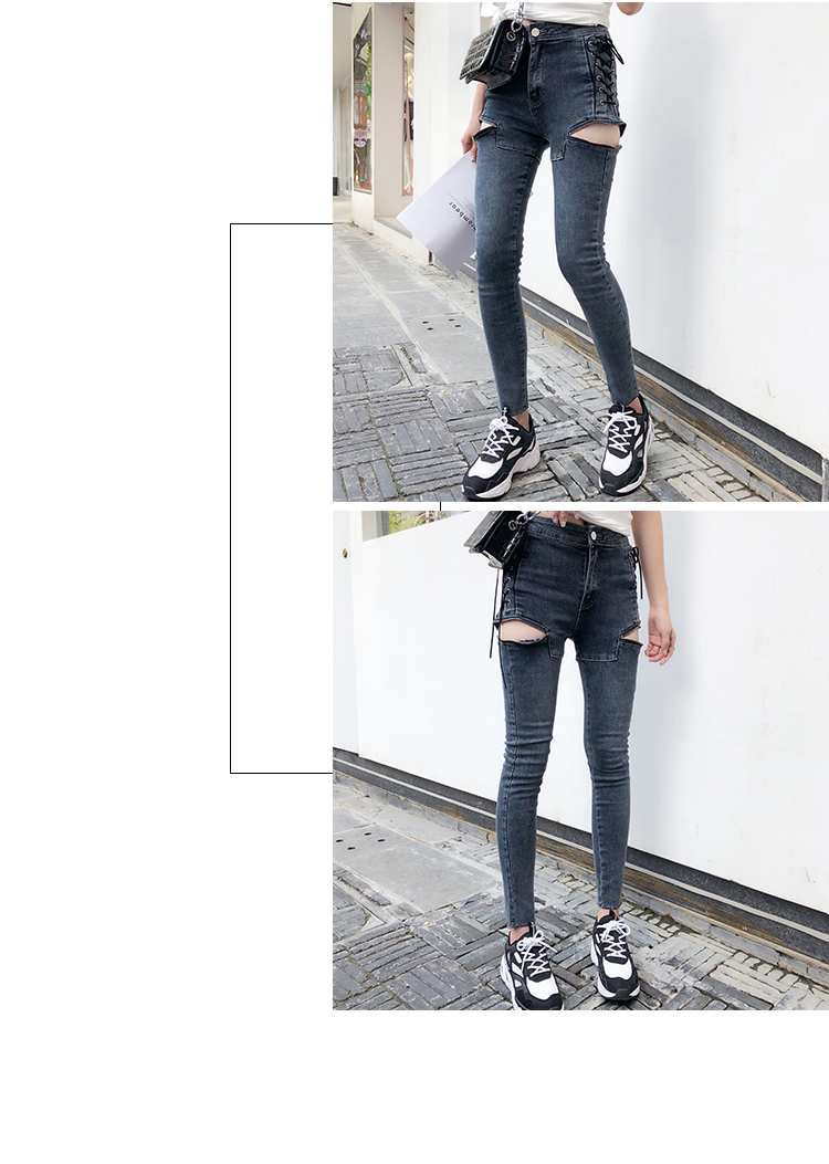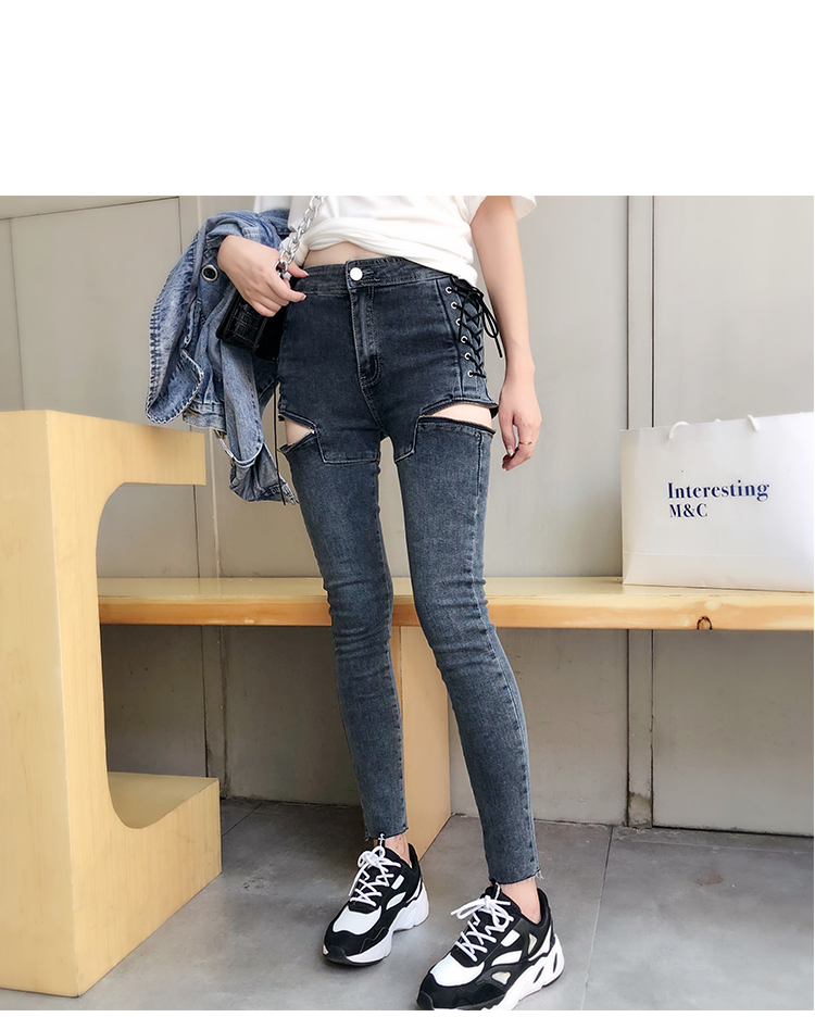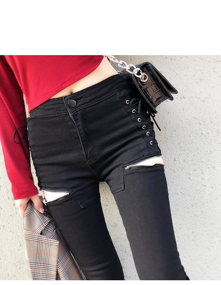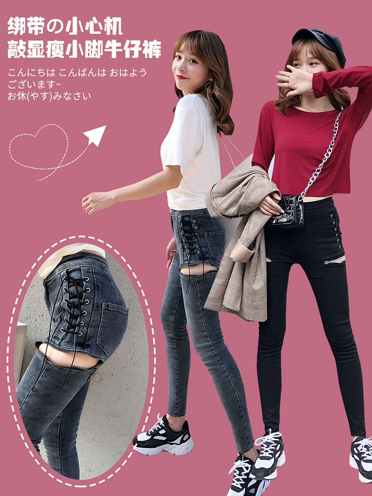 褲子女秋裝新款高腰緊身顯瘦牛仔褲長褲百搭韓版小腳褲鉛筆褲1入