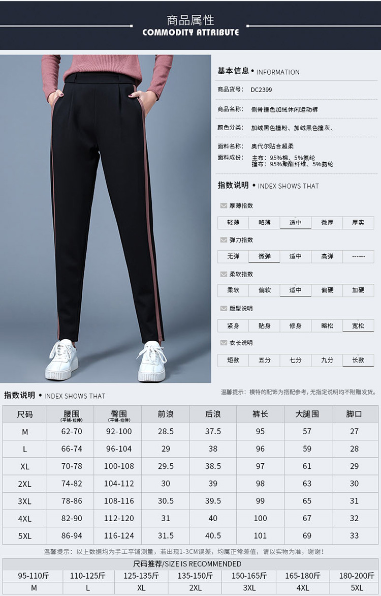 運動褲女加肥加大碼寬松胖mm哈倫女褲秋冬加絨衛褲200斤休閑長褲1入