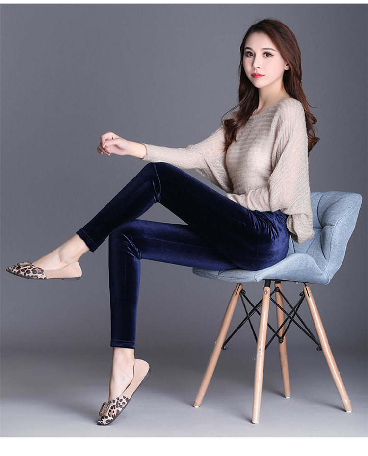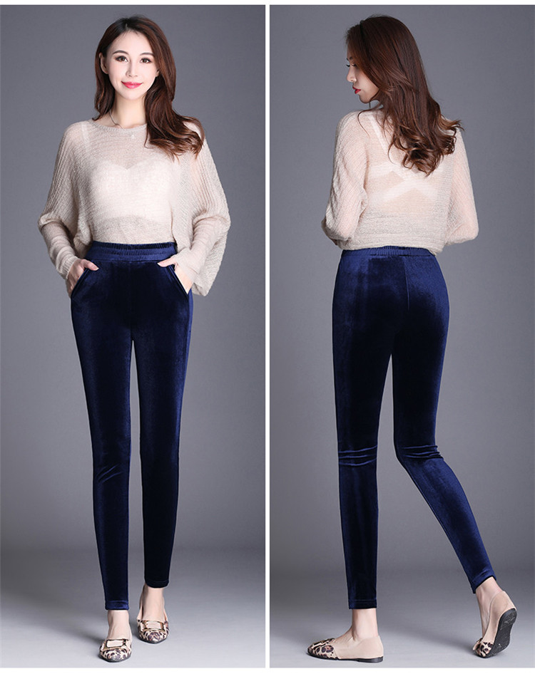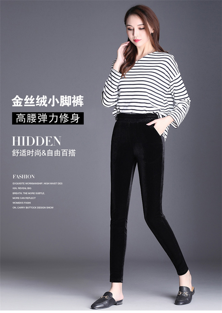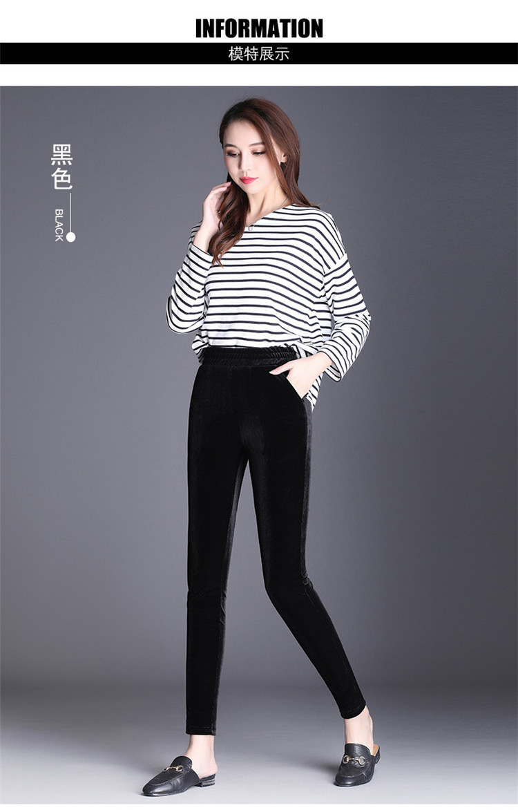 金絲絨打底褲女外穿秋冬加絨長褲200斤胖mm超大碼加厚緊身小腳褲1入