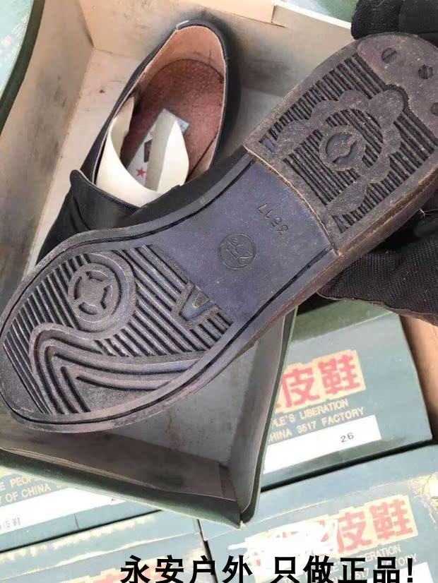 87式配發品的jiangjun皮鞋,3517廠生產的,是專門配發給高級別的jiangjun的哦,采用優質牛皮材料,結實耐用,鞋面經過磨光處理,該鞋設計簡潔大氣,和普通的87式三接頭皮鞋設計有很大不同,都是90年代生產的,庫存全新老貨,鞋面柔軟沒有任何失水問題,收藏穿著都是極好的。