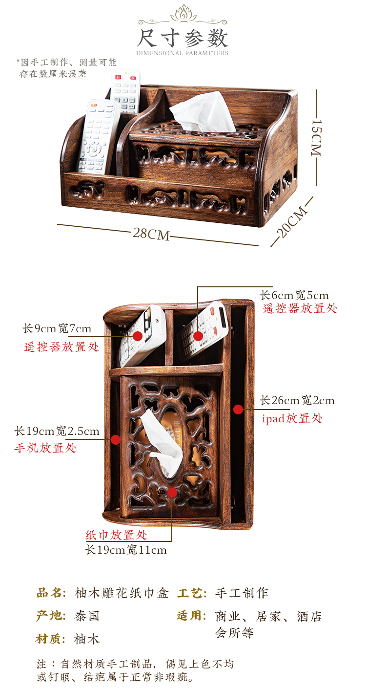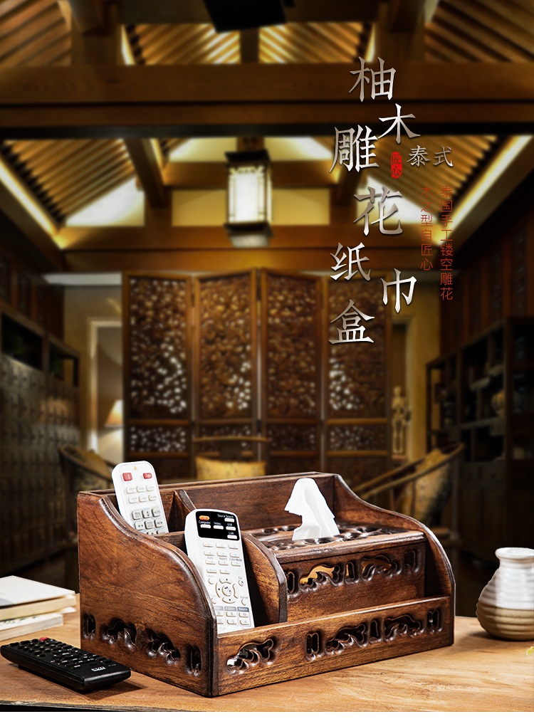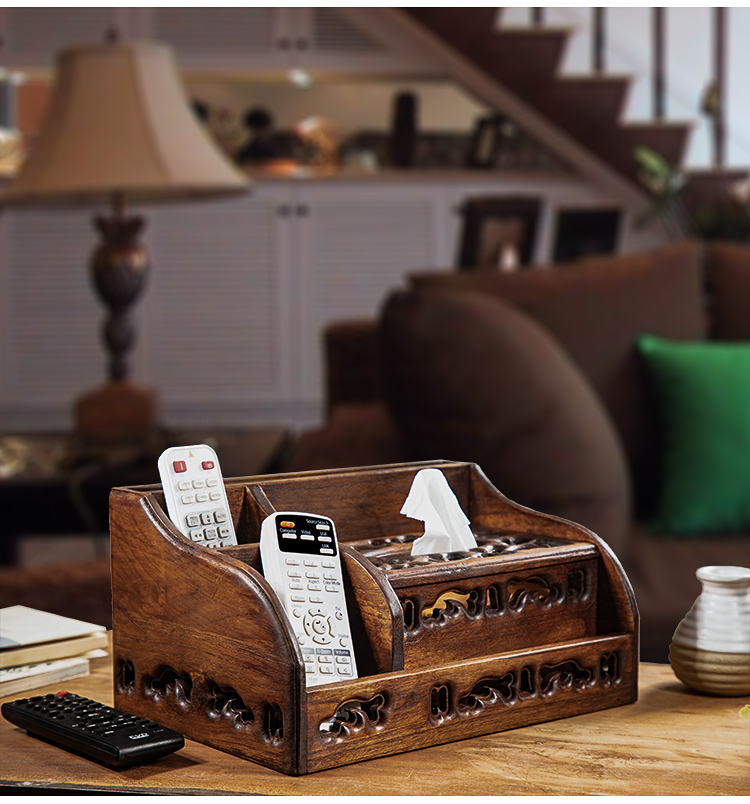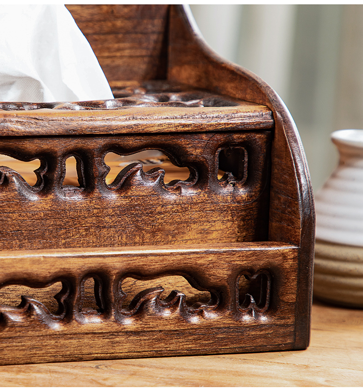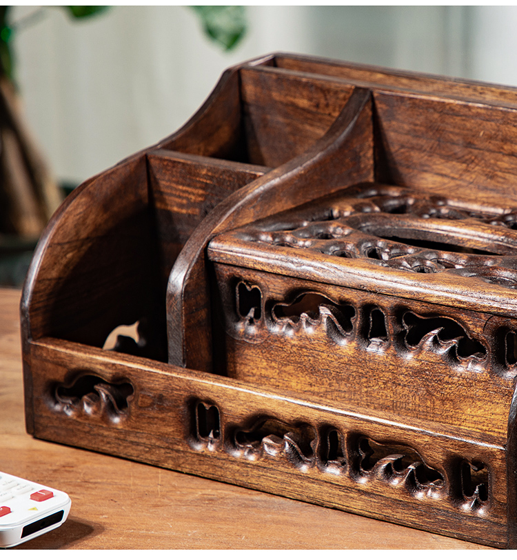 創意實木多功能紙巾盒抽紙盒客廳茶幾復古桌面遙控器收納盒紙抽盒1入