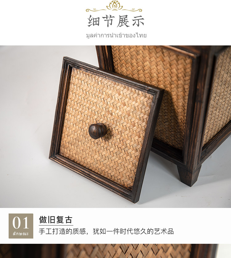 復古藤編木質紙簍大號帶蓋客廳廚房茶室家用創意中式實木垃圾桶1入