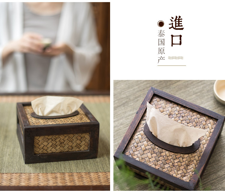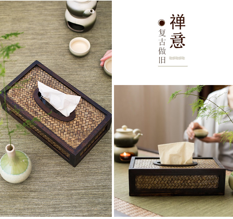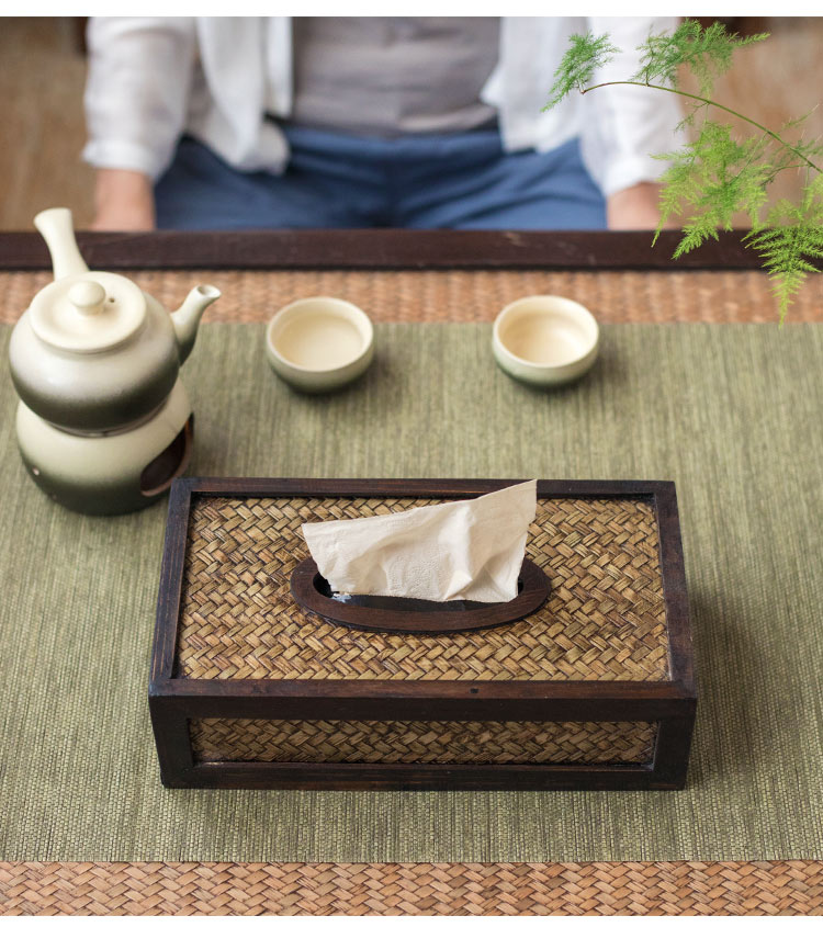 創意簡約紙抽盒家用實木客廳紙巾盒 竹編抽紙盒藤編木質餐巾紙盒1入