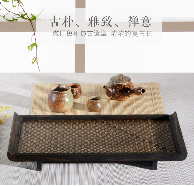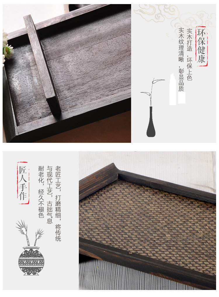 會所茶室禪意茶具干泡茶盤家用客廳日式茶托盤辦公室實木茶水托盤1入