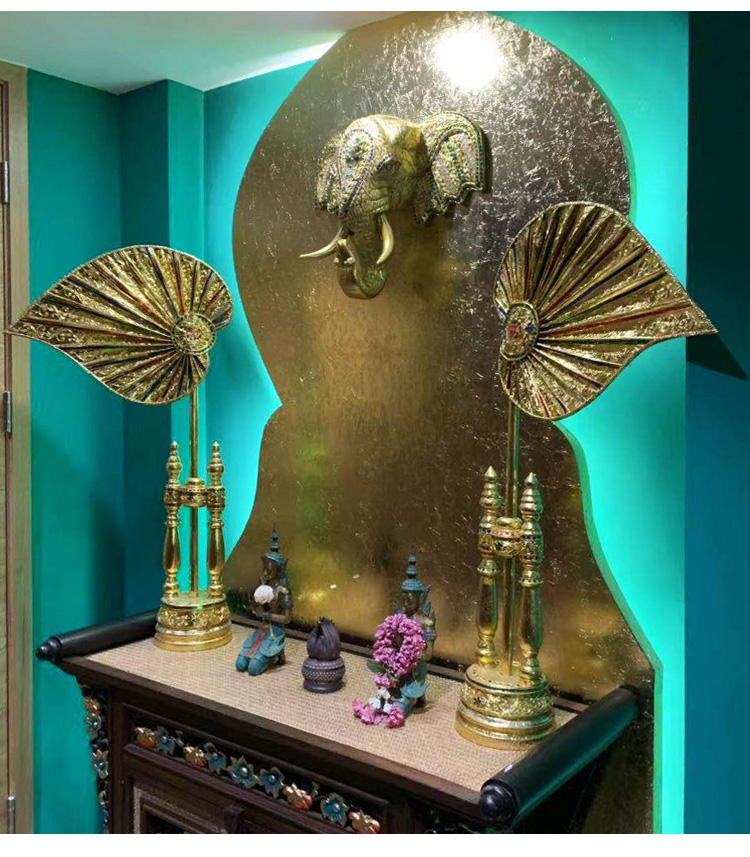 泰國創意家飾 東南亞擺件 高檔美容院會所酒店裝飾品 招財菩提扇1入