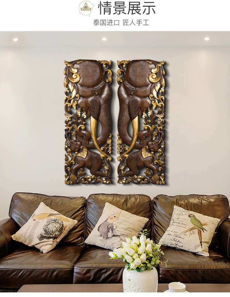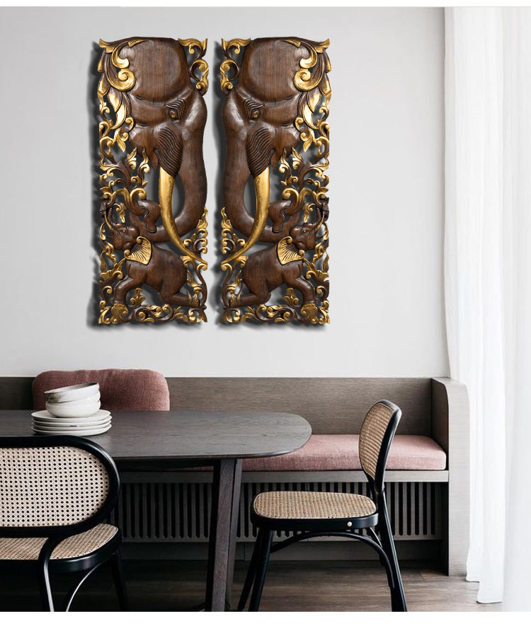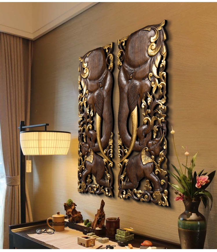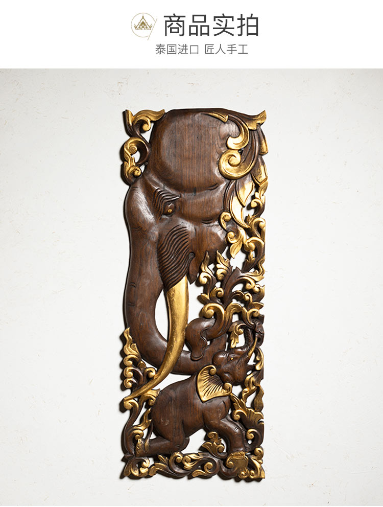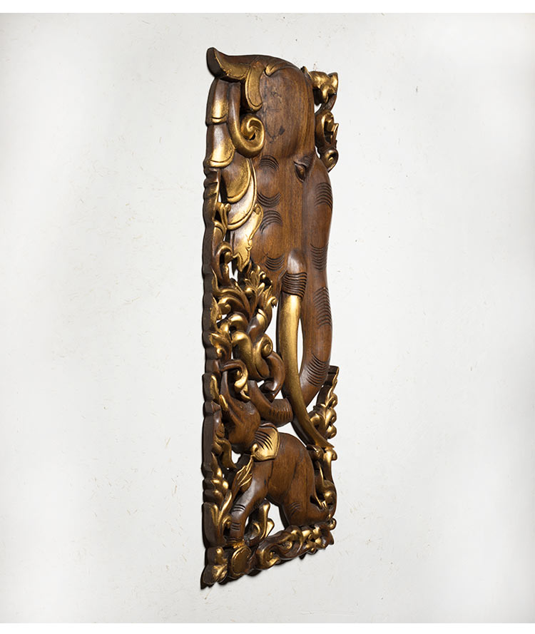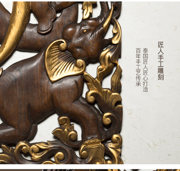 [2]東南亞風格木雕泰國柚木鏤空雕刻招財大象玄關掛板雕花板實木壁掛1入