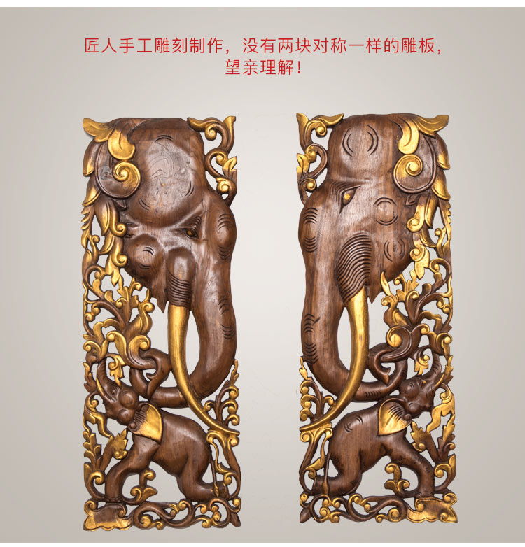 東南亞風格木雕泰國柚木鏤空雕刻招財大象玄關掛板雕花板實木壁掛1入