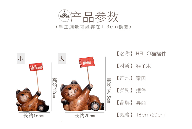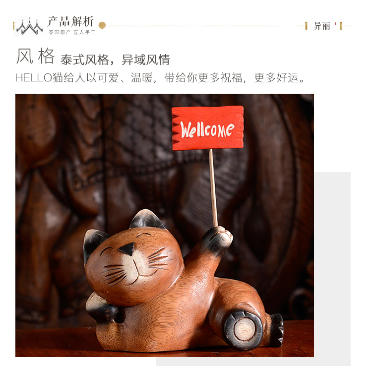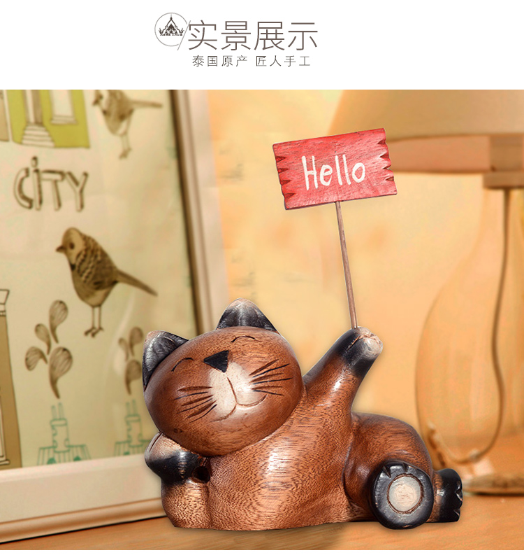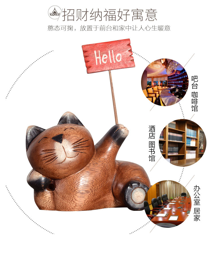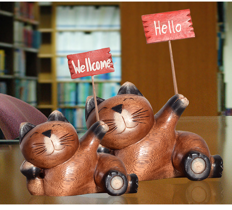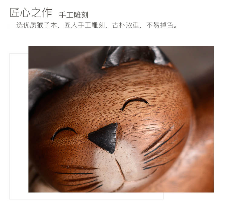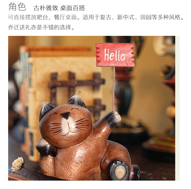 木質工藝品創意招財貓咪擺件客廳電視柜酒柜書柜家居裝飾品擺設1入